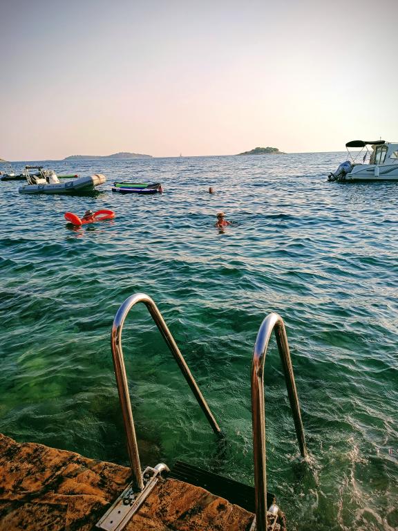 Apartamenty położone są w spokojnej wiosce weekendowej, odpowiedniej na rodzinne wakacje. Plaża jest betonowa, kamienista i kamienista w cieniu, odpowiednia dla małych dzieci. W pobliżu znajduje się restauracja „Punta”.