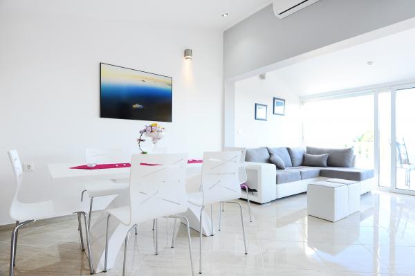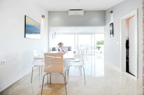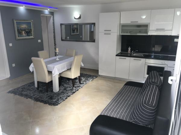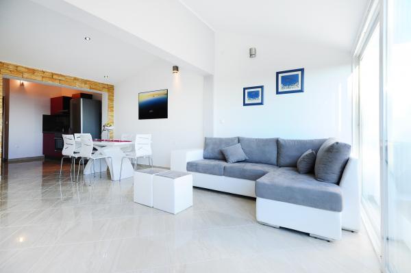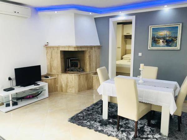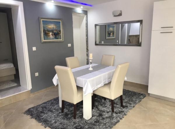 Dwa nowe apartamenty w spokojnej części Rogoznica, oferuje wszystko, czego potrzeba do pełnego wypoczynku i relaksu, spokoju, odległość od zgiełku miasta, prywatne miejsce na plaży z leżakami i parasolami, możliwość wynajęcia łodzi do poszukiwania i zwiedzić okoliczne wyspy. Widok z tarasu na drodze do latarni Mulo i okoliczne wyspy .. W pobliżu znajduje się centrum Rogoznicy, zaledwie 7 minut jazdy samochodem, masz okazję odwiedzić miasto Primosten. Czekamy na Ciebie!