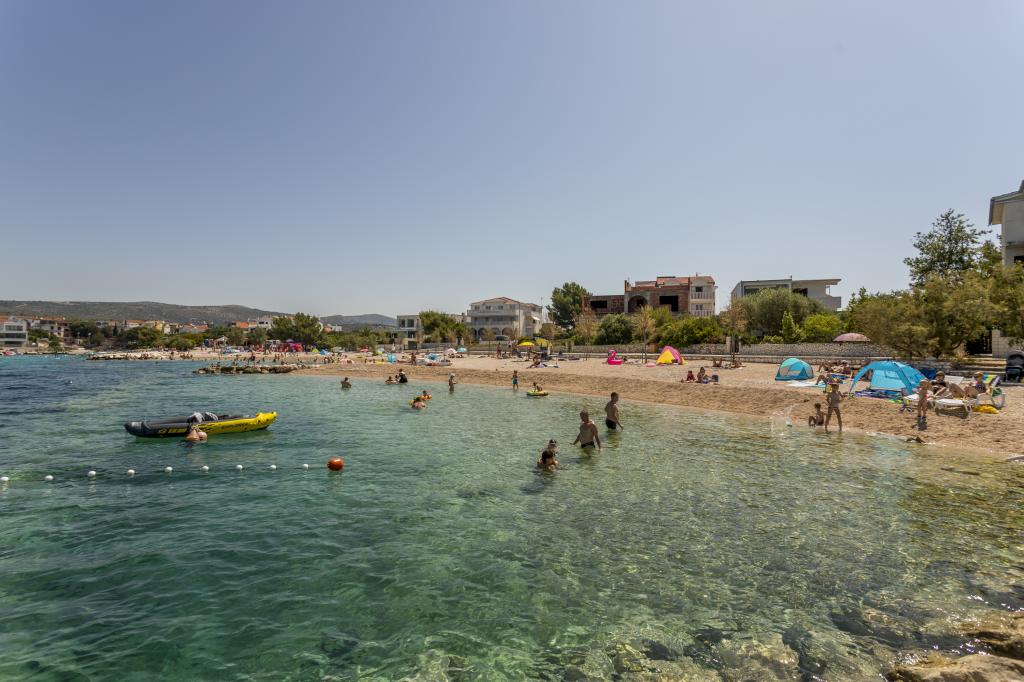 Wszystko jest jak na zdjęciu, nowe i jasne. Łóżka są wyjątkowo wysokiej jakości i wygodne. Inne meble i wyposażenie są połączone w jakość i smak. Klimatyzator milczy, a brzęczenie jednostek zewnętrznych nie jest słyszalne, dzięki czemu można cieszyć się tarasem i spać w otwartym oknie. Kuchnia jest w pełni wyposażona, jeśli chcesz gotować. Morze i betonowa plaża znajdują się w odległości 1-minutowego spaceru, a plaża żwirowa - 3-4 minuty spacerem wzdłuż morza. Mieszkanie jest idealne na spokojne rodzinne wakacje. Byliśmy 4, spędziliśmy 9 dni w mieszkaniu i wszyscy czuliśmy się w apartamencie i byliśmy więcej niż szczęśliwi! Pan Damir i jego żona są bardzo mili.