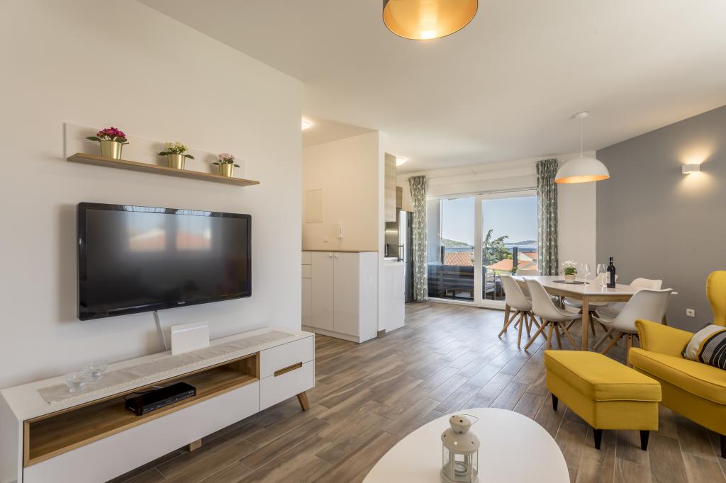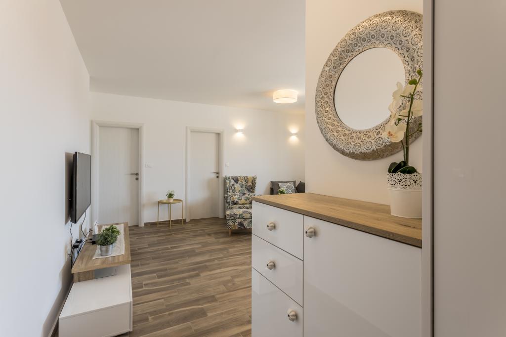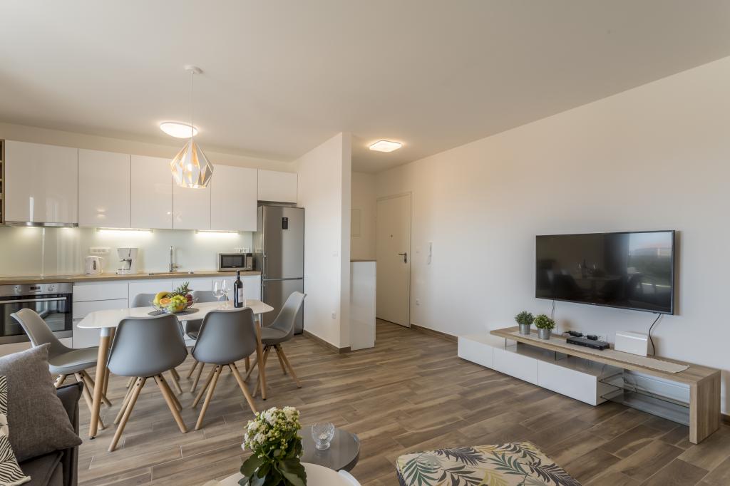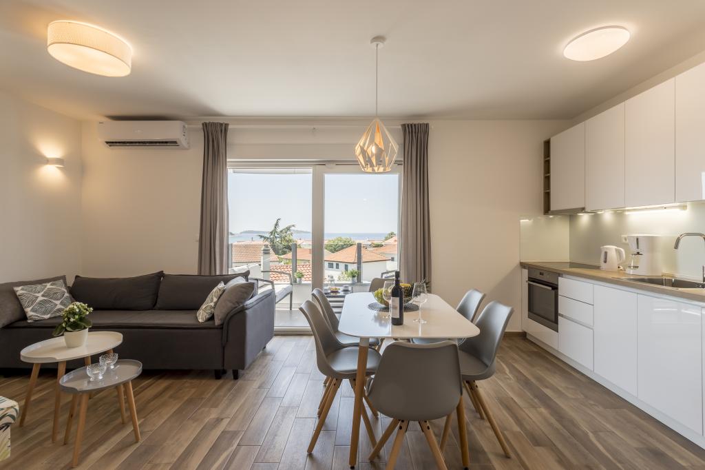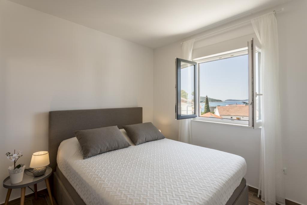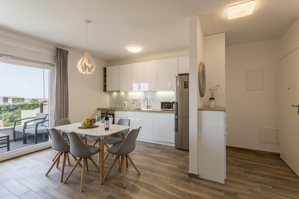 Luksusowo urządzone i w pełni wyposażone nowe apartamenty z widokiem na morze, zaledwie kilka minut spacerem od dużej żwirowej plaży, w spokojnej części Rogoznicy, dzielnicy Lozica. Apartamenty znajdują się na drugim piętrze nowego budynku, przed którym znajduje się bezpłatne miejsce parkingowe. Składa się z dwóch podwójnych sypialni z dużymi łóżkami, kuchni i jadalni z salonem, łazienką i tarasem z panoramicznym widokiem na morze.
