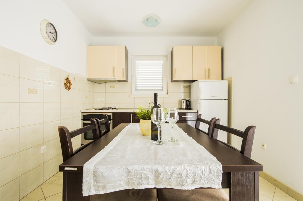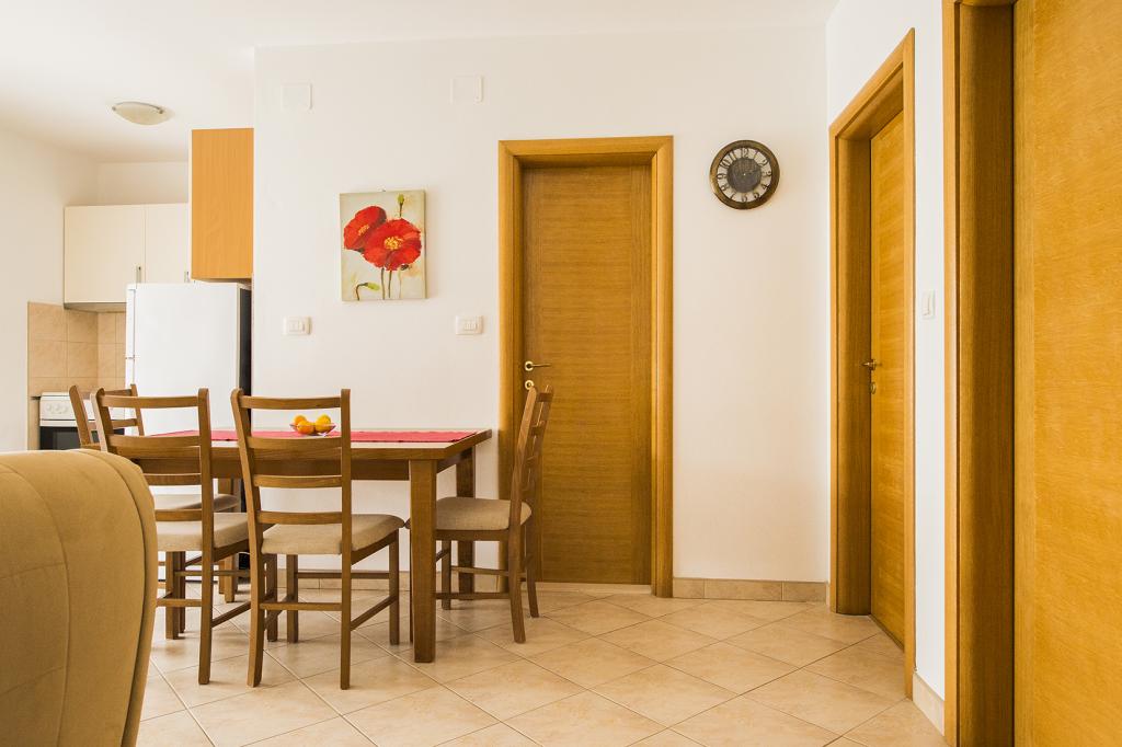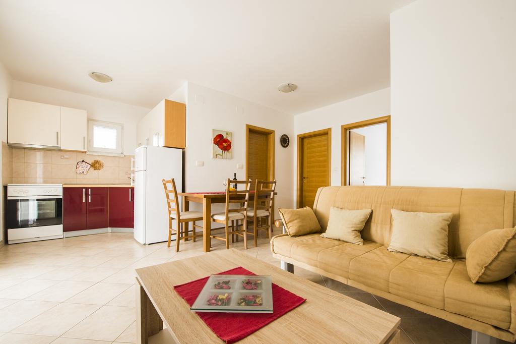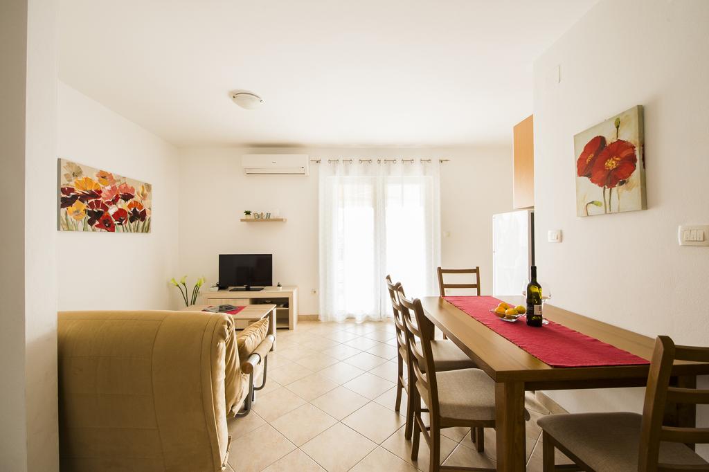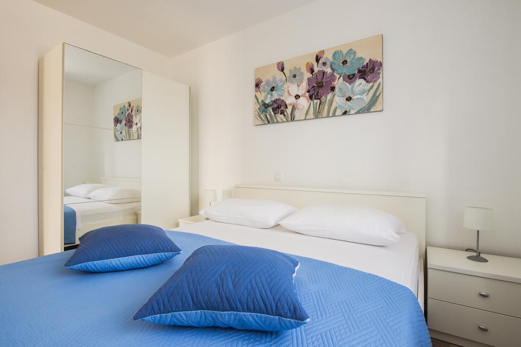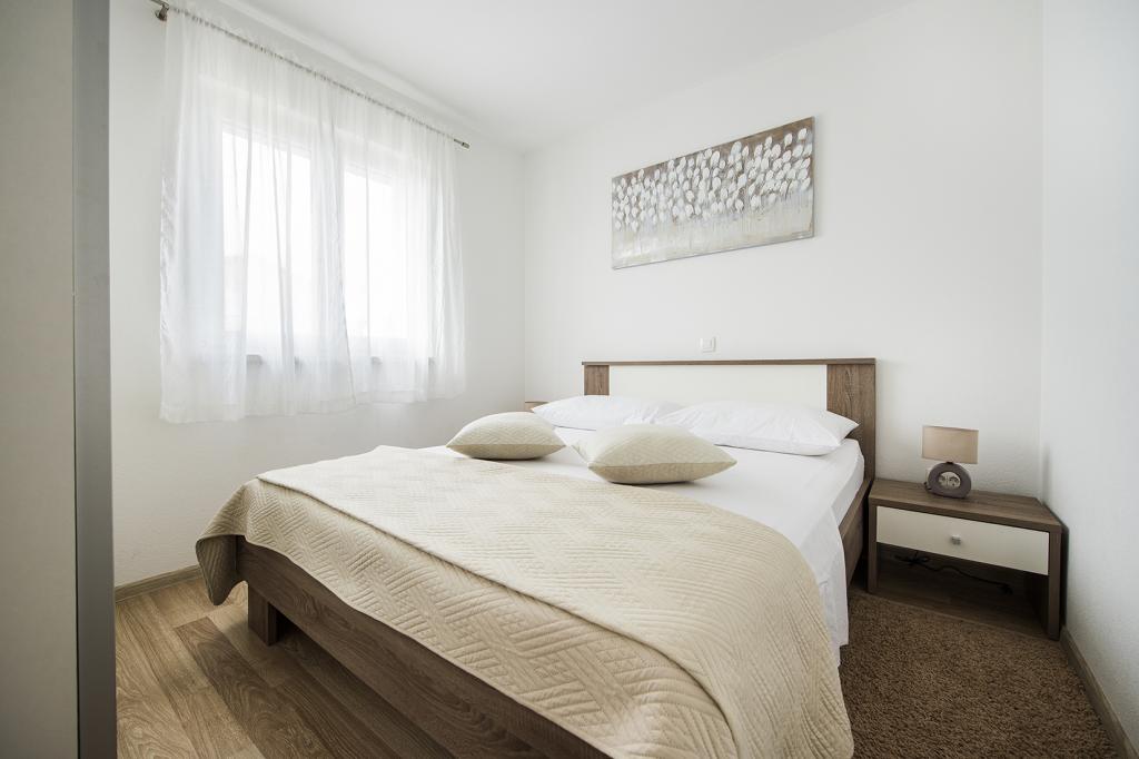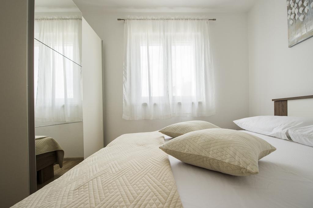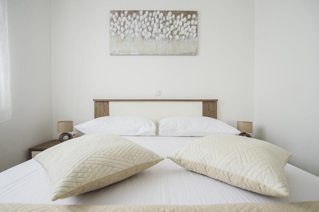 Polecam szczerze te apartamenty, dom niedaleko plaży, o godz. 7.30 w uliczce, która kończy się przed posesją staje pan z pieczywem, parking przy budynku duży, z miejscem do grilowania. Sam apartament przestronny, dobrze wyposażony, w kuchni połączonej z salonem, nie brakuje niczego do przyrządzania posiłków, w dwóch sypialniach łóżka małżeńskie z wygodnymi materacami, w oknach okiennice oraz moskitiery. Balkon duży z widokiem na morze. Gospodarze bardzo mili i pomocni, przywitali nas półmiskiem własnych wędlin oraz winem, w dniu wyjazdu także otrzymaliśmy robione przez nich trunki. Niedaleko domu, kilka zróżnicowanych plaż do wyboru.