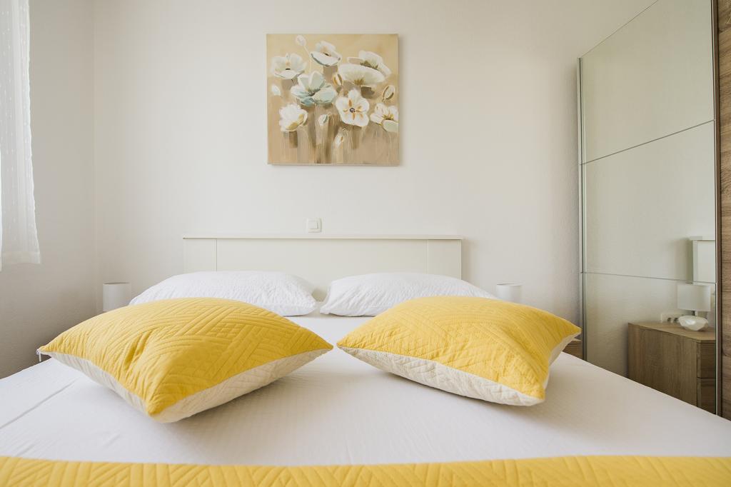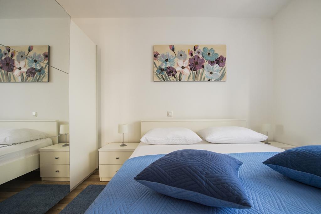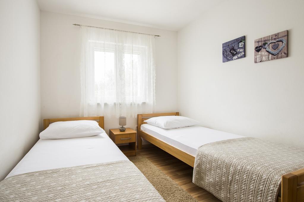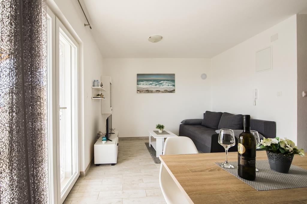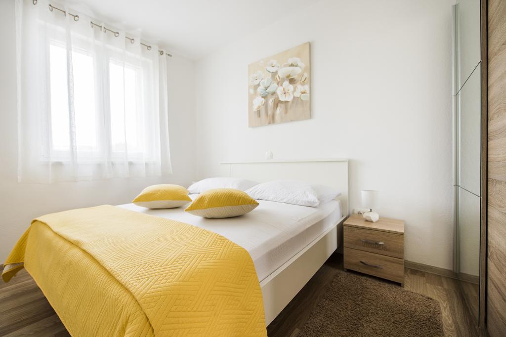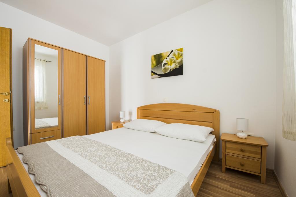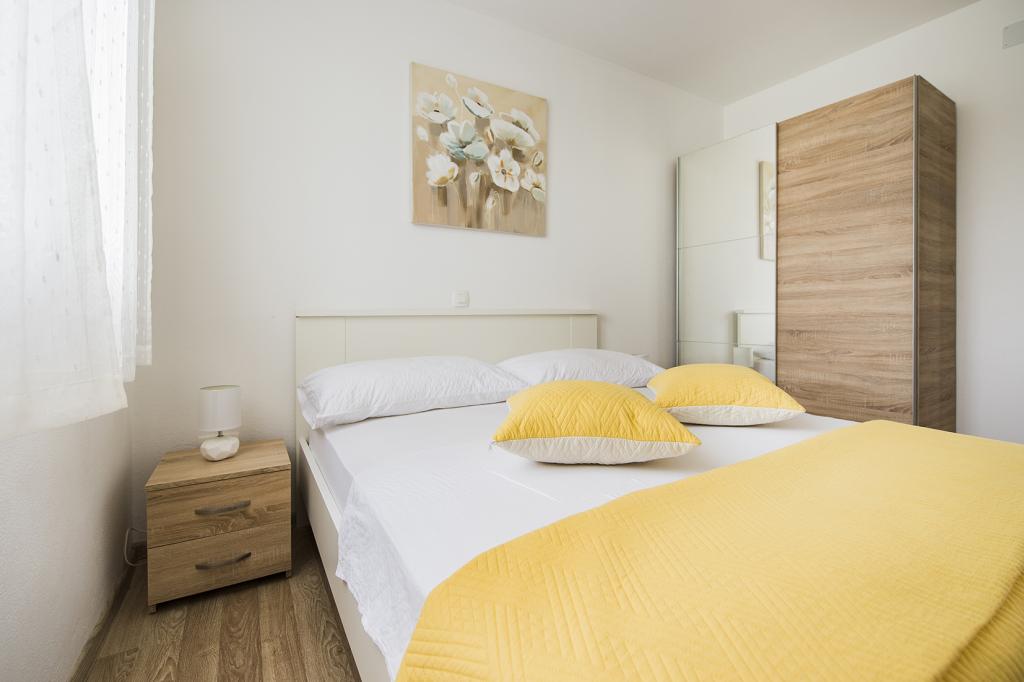 Polecam szczerze te apartamenty, dom niedaleko plaży, o godz. 7.30 w uliczce, która kończy się przed posesją staje pan z pieczywem, parking przy budynku duży, z miejscem do grilowania. Sam apartament przestronny, dobrze wyposażony, w kuchni połączonej z salonem, nie brakuje niczego do przyrządzania posiłków, w dwóch sypialniach łóżka małżeńskie z wygodnymi materacami, w oknach okiennice oraz moskitiery. Balkon duży z widokiem na morze. Gospodarze bardzo mili i pomocni, przywitali nas półmiskiem własnych wędlin oraz winem, w dniu wyjazdu także otrzymaliśmy robione przez nich trunki. Niedaleko domu, kilka zróżnicowanych plaż do wyboru.