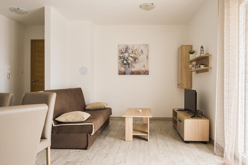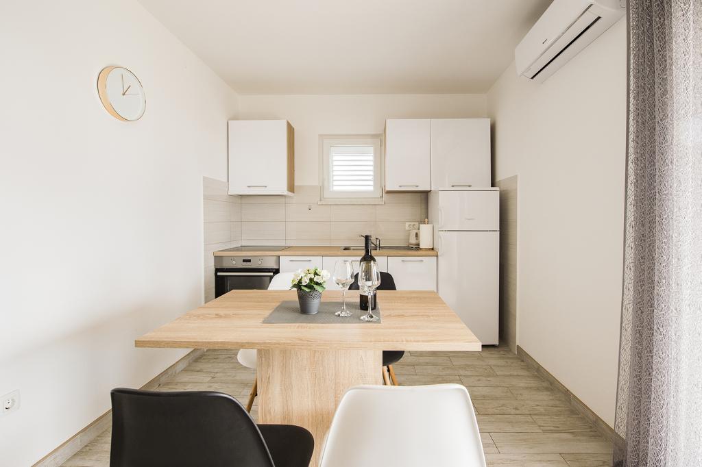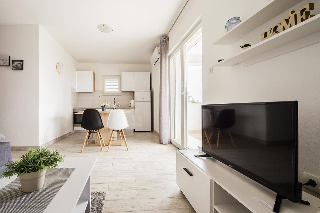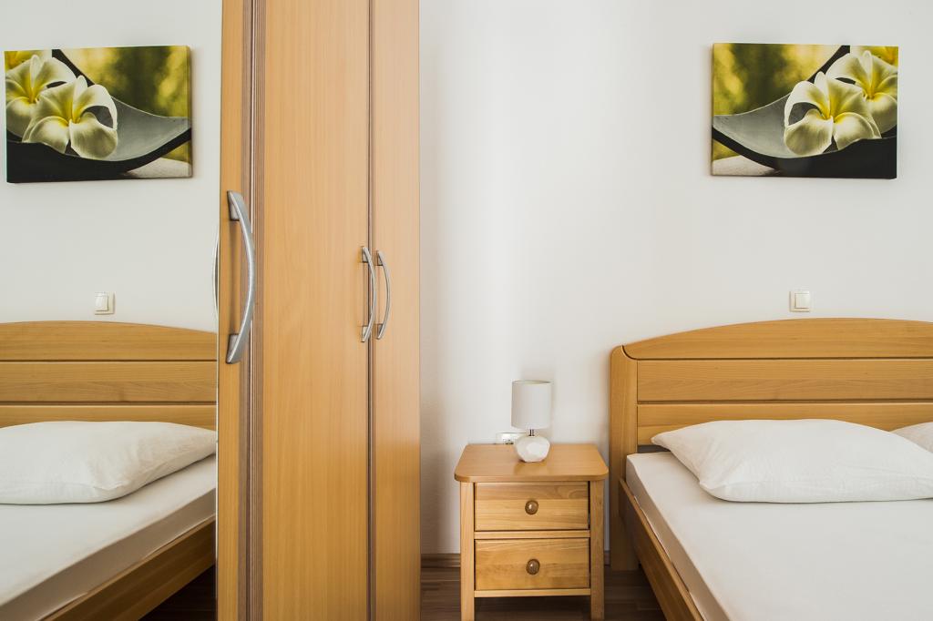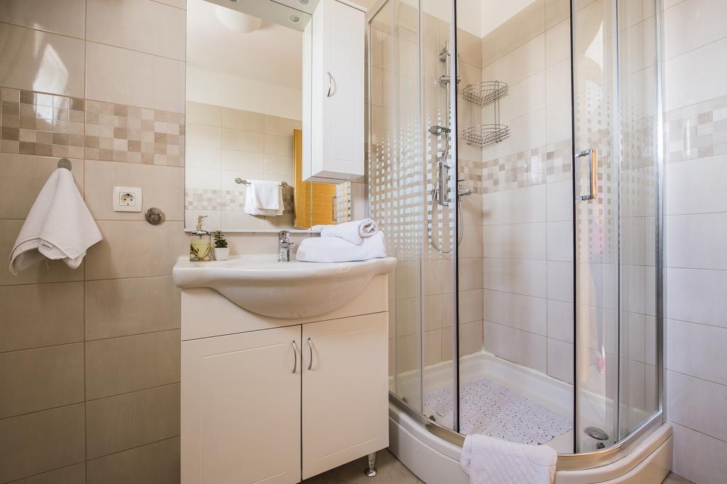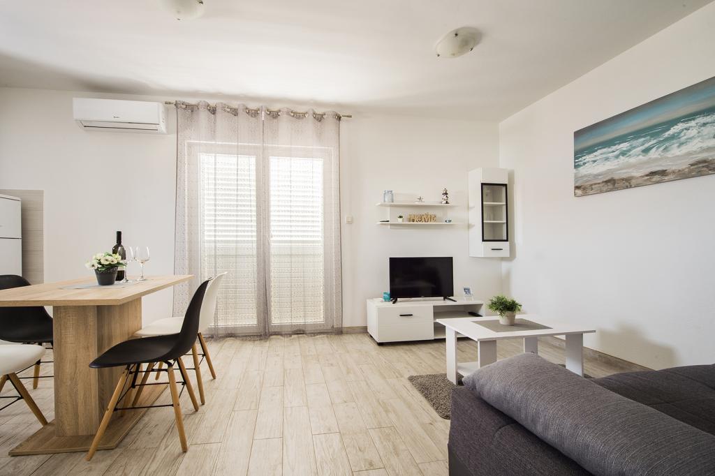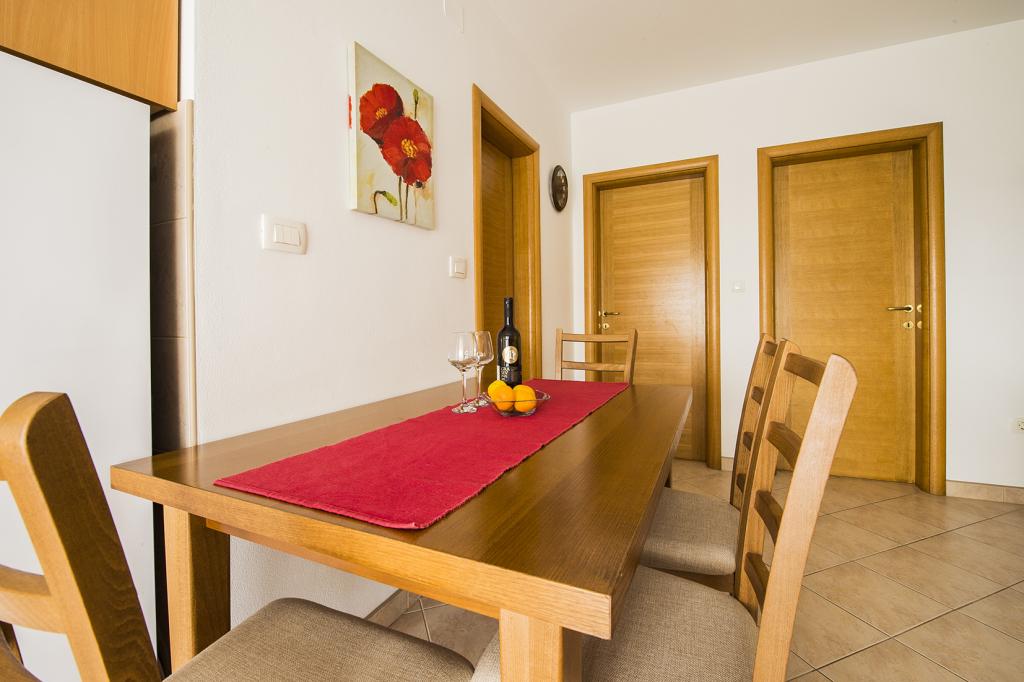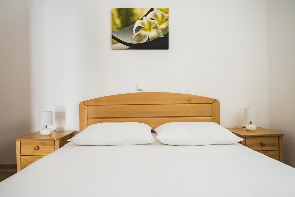 Polecam szczerze te apartamenty, dom niedaleko plaży, o godz. 7.30 w uliczce, która kończy się przed posesją staje pan z pieczywem, parking przy budynku duży, z miejscem do grilowania. Sam apartament przestronny, dobrze wyposażony, w kuchni połączonej z salonem, nie brakuje niczego do przyrządzania posiłków, w dwóch sypialniach łóżka małżeńskie z wygodnymi materacami, w oknach okiennice oraz moskitiery. Balkon duży z widokiem na morze. Gospodarze bardzo mili i pomocni, przywitali nas półmiskiem własnych wędlin oraz winem, w dniu wyjazdu także otrzymaliśmy robione przez nich trunki. Niedaleko domu, kilka zróżnicowanych plaż do wyboru.
