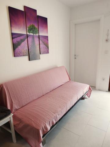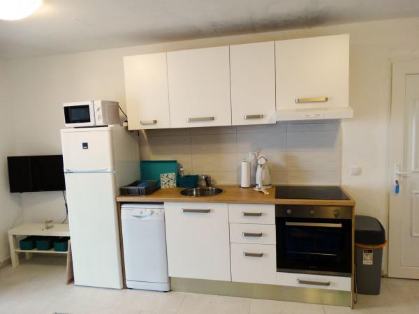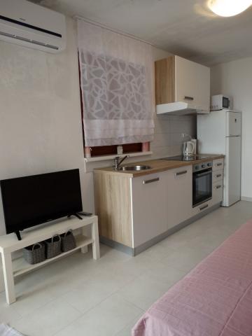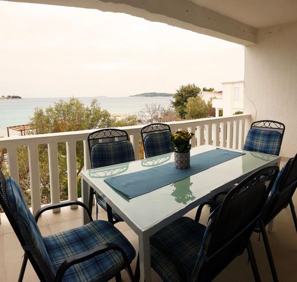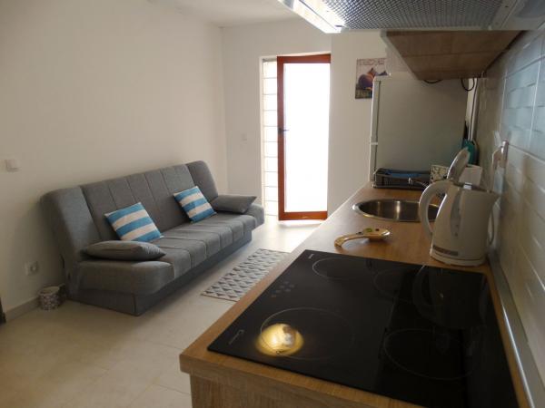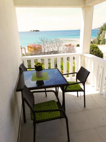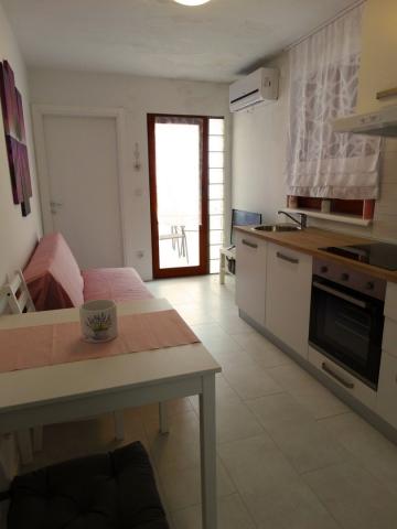 W pełni i nowocześnie wyposażone apartamenty przeznaczone są dla wszystkich, którzy pragną spokojnego, rodzinnego wypoczynku. Obiekt położony jest w pierwszym rzędzie od morza i posiada bezpośrednie wyjście z ogrodu na plażę. Mniejszy apartament wyposażony jest w 2 łóżka i rozkładaną sofę. Większy apartament wyposażony jest w 2 łóżka pojedyncze, 1 łóżko podwójne i rozkładaną sofę. Kuchnie wyposażone są w płytę ceramiczną i piekarnik, kuchenkę mikrofalową, lodówkę z zamrażalnikiem i zmywarkę (duży apartament). Nowoczesne łazienki wyposażone są w prysznice, toalety, umywalki i pralkę (duży apartament). Każdy apartament wyposażony jest w stoły jadalne z krzesłami. Na tarasach znajdują się: stół z 3 krzesłami (mały apartament) i stół z 6 krzesłami (duży apartament). Apartamenty wyposażone są również w telewizor, internet Wi-Fi i klimatyzację. Do dyspozycji Gości jest parking na kilka samochodów. Ogród zdobią rodzime rośliny, drzewa oliwne, laury i najpiękniejsze lokalne figi.
