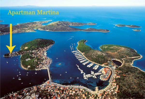 Przestronne mieszkanie w spokojnej części wyspy Rogoznicy, umieszczony drugi rząd. Mieszkanie znajduje się na pierwszym piętrze domu znajduje się duży taras z huśtawką i otoczony zielenią i kwiatami. Niższy ogród jest grill który jest do dyspozycji gości. Centrum jest w odległości 5 minut jazdy od hotelu. Plaża i bar na plaży jest zaledwie kilka minut spacerem od apartamentu.