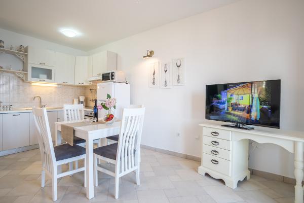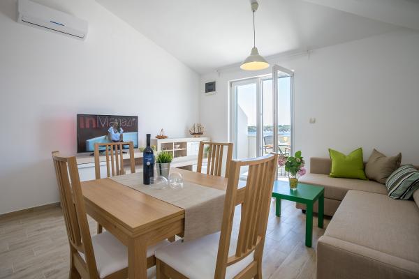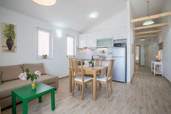 Znajdujemy się w Rogoźnicy, w szczególności w Zatoglav. Zatoglav jest ciche miejsce, poza korkami, idealny na rodzinne wakacje w relaksującej atmosferze, choć tylko dwa kilometry od centrum miasta turystycznego i sześciu z Primosten. , Tak więc tylko dwa kilometry promień można znaleźć wszystko, czego potrzebujesz - supermarkety, apteka, bank, poczta, restauracje, bary, place zabaw i tak. Oferujemy dwa nowe i nowoczesne apartamenty, położone 30 m od morza. Pierwszy mieszkanie jest przeznaczony do 4 ludzi i drugi 4. * 2 Każdy apartament posiada taras z widokiem na morze, bezprzewodowy Internet, telewizję satelitarną, klimatyzację i miejsce parkingowe.