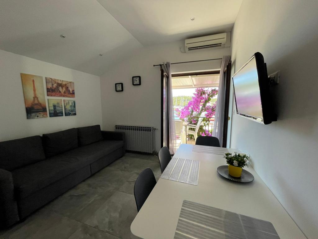 Apartamenty Sime położone są nad morzem, z pięknym widokiem na stare miasto i marina Frapa. W pobliżu domu znajduje się promenada, która łączy stare miejsce na nowe, jak i ścieżki rowerowe, które są idealne do zwiedzania okolic.