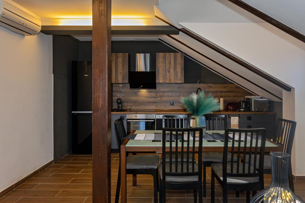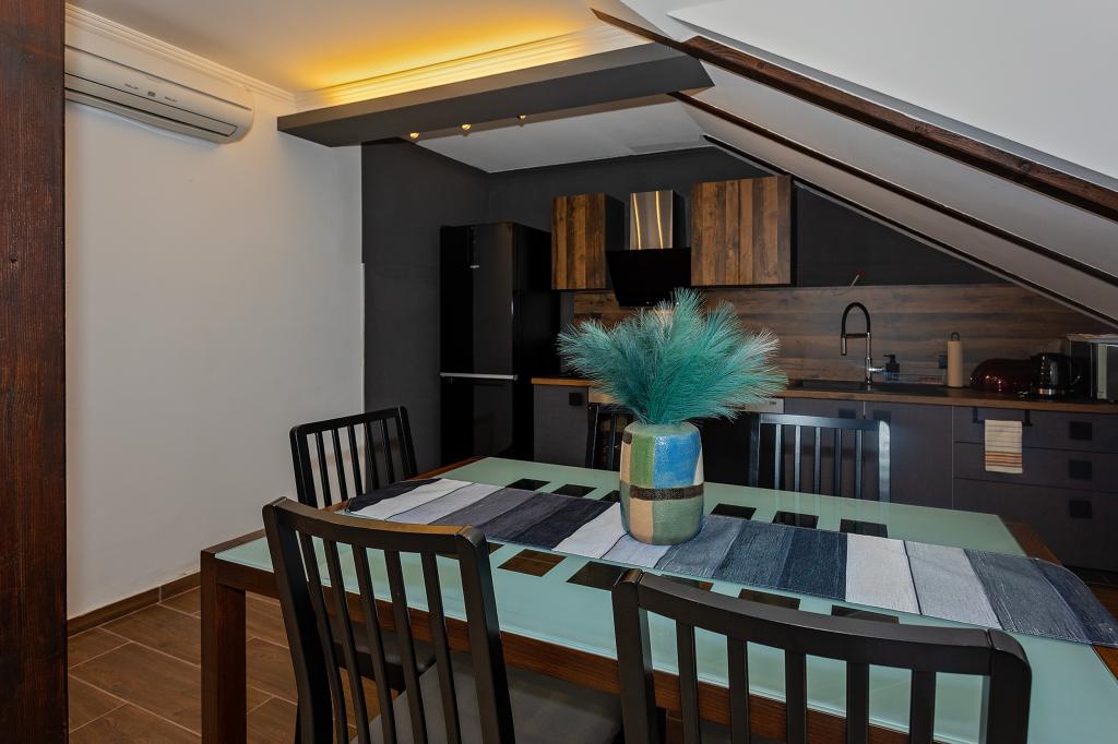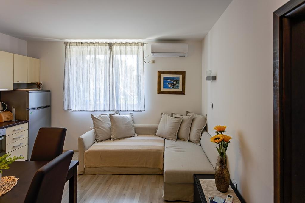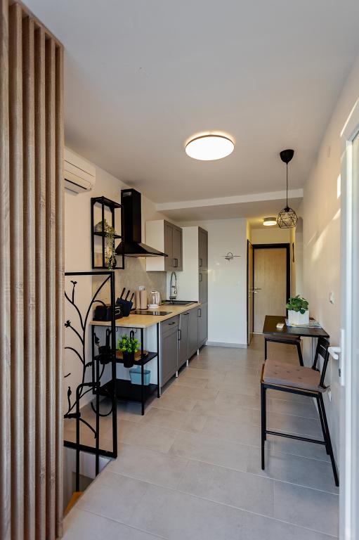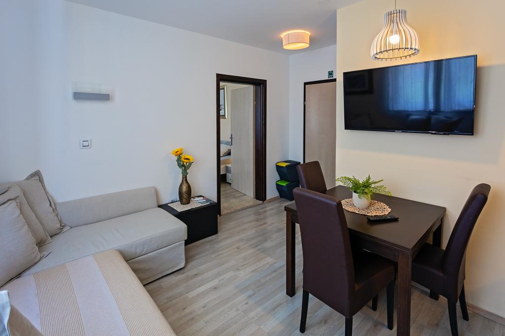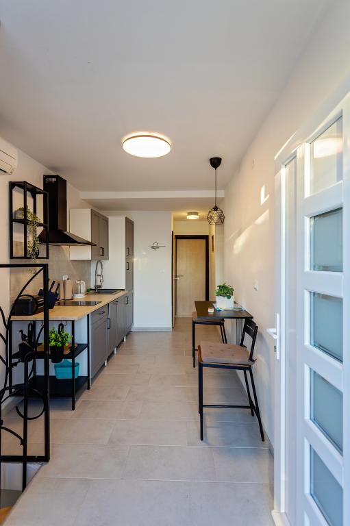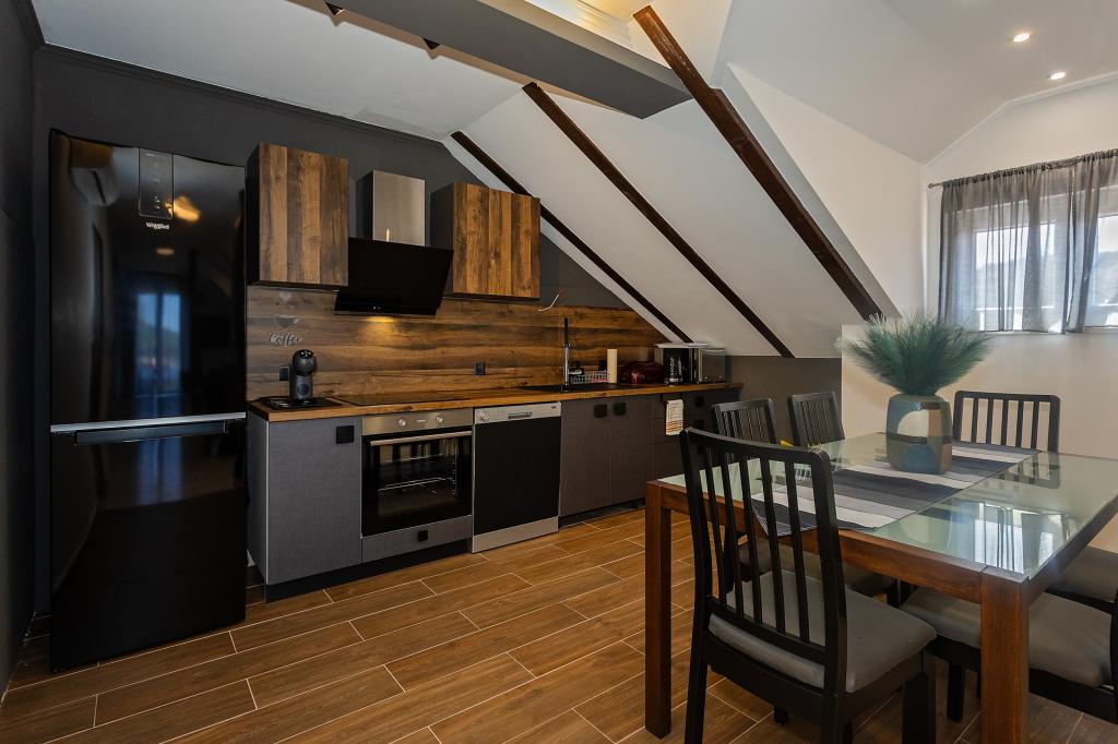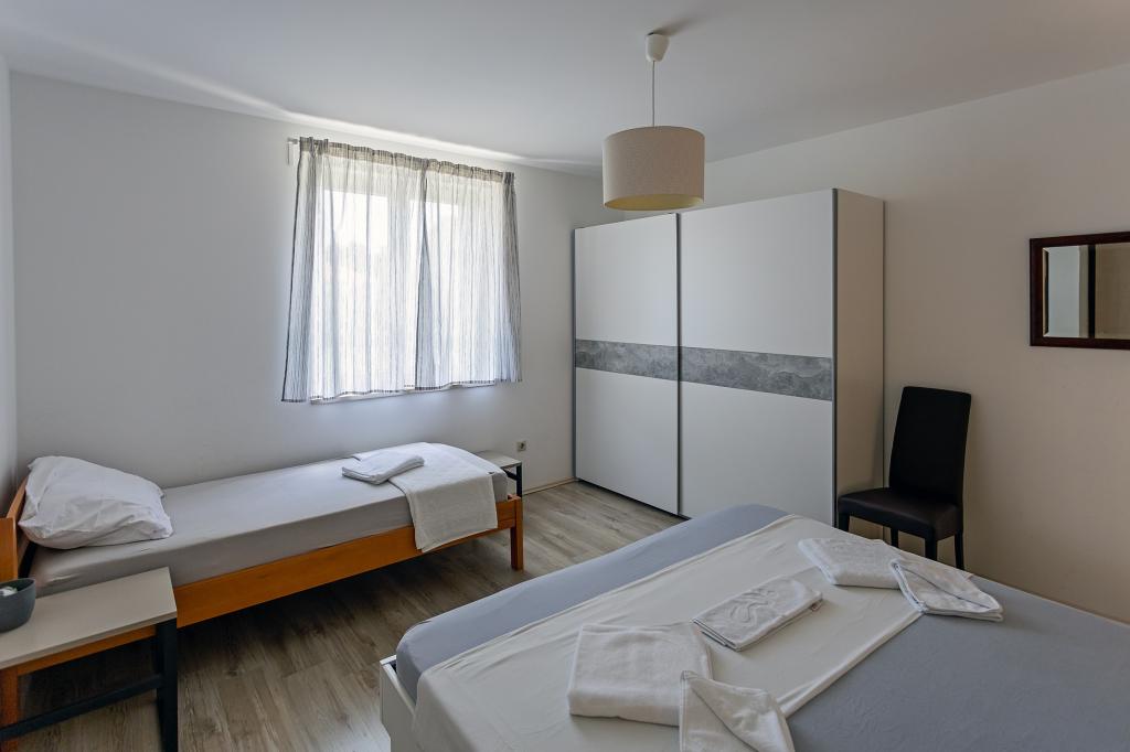 Apartament Skorin mieści się w domu rodzinnym na półwyspie Rogoznica, położonym w centrum miasta. W promieniu 300 m zlokalizowana jest większość udogodnień i usług oferowanych przez Rogoznicę. W budynku znajdują się 4 apartamenty, dzięki czemu każdy może wybrać ten, który najbardziej mu odpowiada. Apartamenty zostały odnowione w 2017, 2022 i 2023 roku. W odległości 50 m od obiektu otwarto nowy teren do ćwiczeń na świeżym powietrzu.