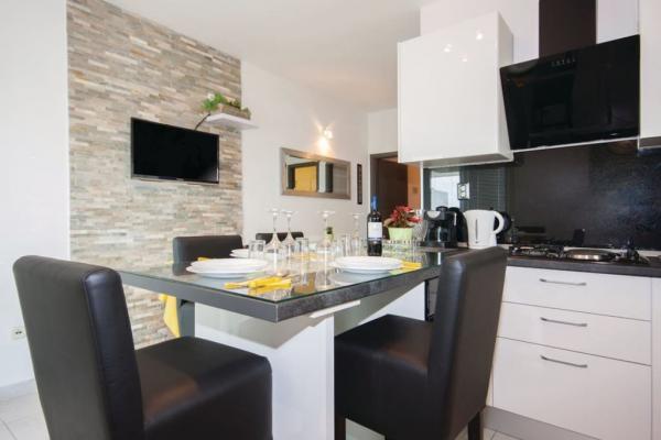 W naszym domu wakacyjnym znajdują się 4 nowoczesne apartamenty. Każdy z apartamentów ma dwie sypialnie i nowocześnie wyposażoną kuchnię oraz łazienkę, dzięki czemu pobyt w hotelu jest tak komfortowy, jak to tylko możliwe. Dwa apartamenty na parterze mają taras, z którego można podziwiać zatokę i pobliską Rogoznicę. Pozostałe dwa apartamenty w naszym domu znajdują się na pierwszym piętrze, dwa piętra i posiadają balkon, z którego roztacza się piękny widok. Nasz obiekt znajduje się w spokojnej miejscowości Zatoglav, która jest tylko 5 minut jazdy samochodem od Rogoznica samochodem lub łodzią i 30 metrów od plaży.