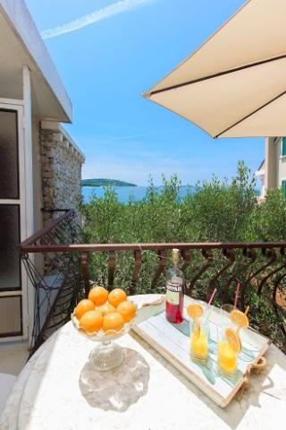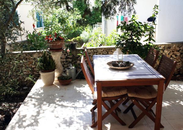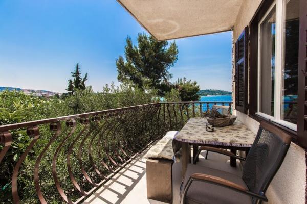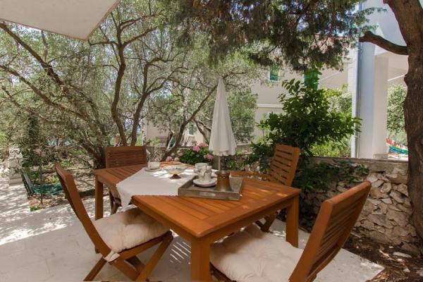 Apartamenty znajdują się w domu przez morze na działce o powierzchni 800m2. Dom jest typowym dalmatyńskim ogród (figi, oliwki, lawenda, kwiaty). Oliwki siana daje przyjemny cień w upalne letnie dni. W ogrodzie znajduje się grill, prysznic, ścieżka kamień wychodzi na plaży, gdzie cumowanie łodzi (za darmo). Za domem jest duży parking, do centrum miasta, z łatwym spacerem do morza w ciągu 20 minut. W pobliżu domu znajduje się ładny bar, gdzie w cieniu tamaryszek można cieszyć się poranną kawę lub w zachodzie słońca, popijając szklanką piwa .... Istnieją trzy apartamenty i właściciele mieszkania, aby pomóc w każdej chwili dyskretnie dostępne. Mówimy po angielsku, francusku i taljanski. Apartamenty wyposażone są w wysokiej jakości meble częściowo ręcznie (szafek), pościel, ręczniki, ręczniki kuchenne, naczynia, sztućce, małe urządzenia są integralną częścią. Na balkonie znajdują się stoły, krzesła, parasole, leżaki. Marmurowe posadzki i schody i balkony kamień biały Dalmacji.