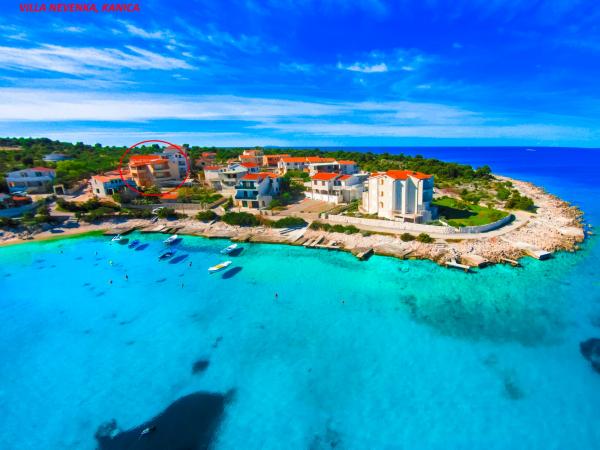 Kanica to mała wioska położona w samym sercu Morza Śródziemnego. To miejsce słynie z czystego morza, piękne krajobrazy, przyjaznych mieszkańców, i charakteryzuje się ciszy i spokoju, który nadaje się do spokojnej rodzinnych wakacji. Jest restauracja Sandokan gdzie można spróbować wielu specjałów kuchni dalmatyńskiej. Villa Nevenka znajduje się 30 metrów od plaży, która jest częściowo piaszczysta, a częściowo utwardzona. Dom zbudowany jest na trzech kondygnacjach, na parterze prywatnego mieszkania, gdzie my (hosts) mieszkam na pierwszym piętrze znajduje się przestronny apartament A3, a na drugim piętrze znajdują się apartamenty A1 i A2. Dom posiada duży ogród i parking na co najmniej 6 samochodów, także w przedniej części domu znajduje się altanka z kominkiem, z którego Goście mogą korzystać. Blisko Kanice, tam są piękne miejsca, takie jak starego miasta Trogir (25 km), Primosten (18 km), Rogoźnicy (10 km). Bardziej odległe miasta Sibenik (45 km) i Splitu (53 km). W pobliżu znajduje się słynny chorwacki krajowych i