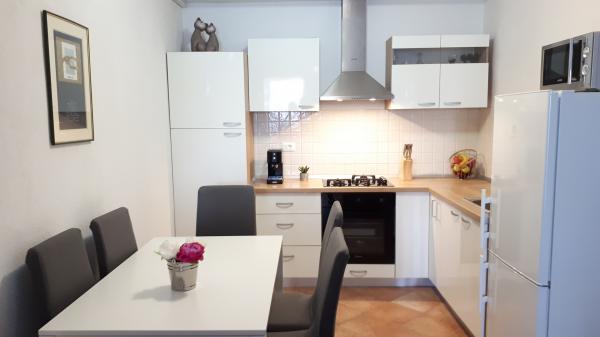 Dom położony jest w pobliżu centrum miasta w pierwszym rzędzie do morza. Składa się z kuchni, salonu, łazienki, trzech sypialni, z których jedna to apartament typu studio na parterze z oddzielną kuchnią, łazienką, TV, klimatyzacją i pralką. Dostępne są dwa miejsca parkingowe w garażu. Piękny taras zapewnia widok na morze z wykorzystaniem leżaków i grilla. Położenie domu pozwala na wykonywanie codziennych czynności bez użycia samochodu w pobliżu sklepów, banków, piekarni, rynków, kawiarni