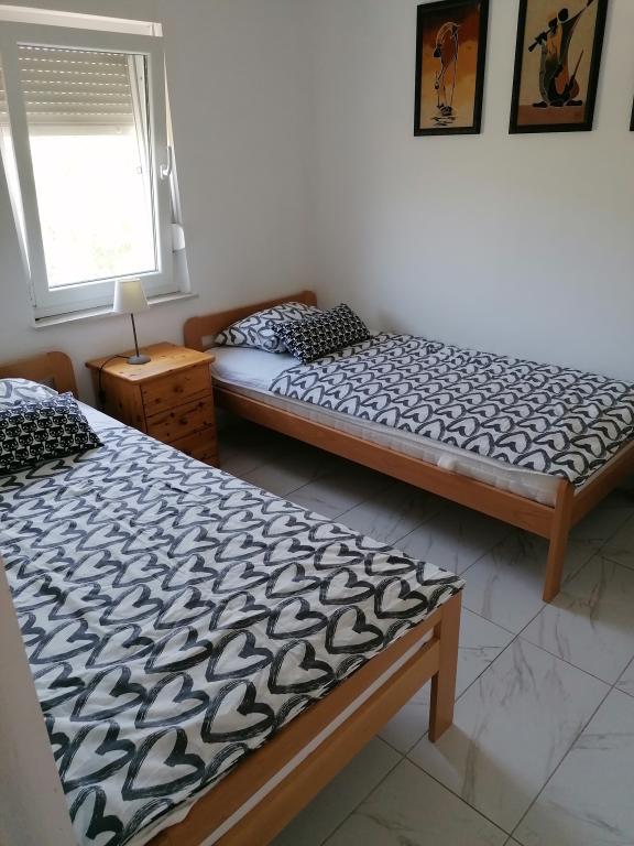 Do wynajęcia mieszkanie dla czterech osób. Lokalizacja Rovanjska koło Zadaru. Mieszkanie znajduje się na pierwszym piętrze. Składa się z salonu, oddzielnej kuchni z lodówką, kuchenką mikrofalową i piekarnikiem. Dwie sypialnie, jedna z łóżkiem małżeńskim, druga z dwoma łóżkami. Łazienka z prysznicem. Mieszkanie posiada oddzielny balkon i klimatyzację. Mieszkanie posiada oddzielny parking na jeden samochód i widok na morze. Znajduje się przy cichej ulicy (ostatnie mieszkanie na ulicy). Odległość od morza wynosi około 500 metrów. Rovanjska ma dwie plaże. Jedna jest betonowa, druga żwirowa.