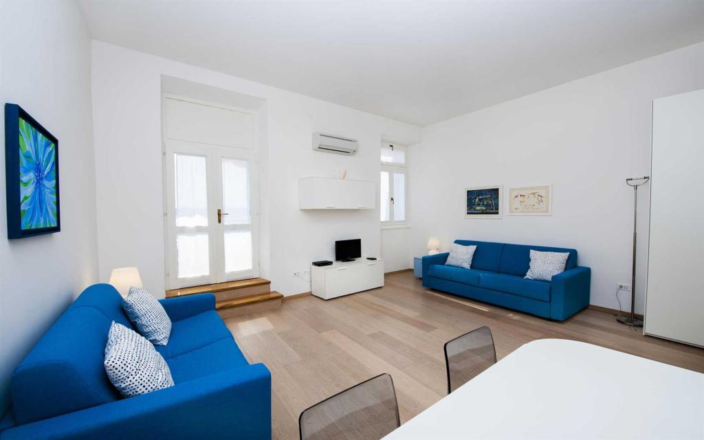 AL PORTO Apartament z 1 sypialnią z widokiem na morze znajduje się w samym centrum miasta Rovinj - deptaku. Najbliższa plaża znajduje się w odległości 5 minut spacerem. Część wewnętrzna to 46 m2. Znajduje się na 2. piętrze. Dodatkową cechą tego zakwaterowania jest widok na morze. W obiekcie znajdują się dwa klimatyzatory. Jeden klimatyzator znajduje się w salonie, a drugi w sypialni. Po przyjeździe każdy gość otrzymuje czystą pościel i ręczniki. Nie ma prywatnego miejsca parkingowego. Płatny parking publiczny jest dostępny w odległości 5-10 minut spacerem.