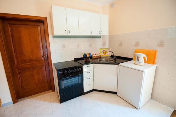 Mieszkanie znajduje się w bardzo spokojnej okolicy, w otoczeniu zieleni i tylko dziesięć minut spacerem do morza. Posiada jedną sypialnię, łazienkę, salon z małą kuchnią. Znajduje się na parterze, posiada taras wychodzący na mały ogródek kwiatowy. Jest idealny dla par lub rodzin z jednym lub dwójką dzieci. Po drugiej stronie ulicy znajduje się mały park, w którym mogą bawić się dzieci.