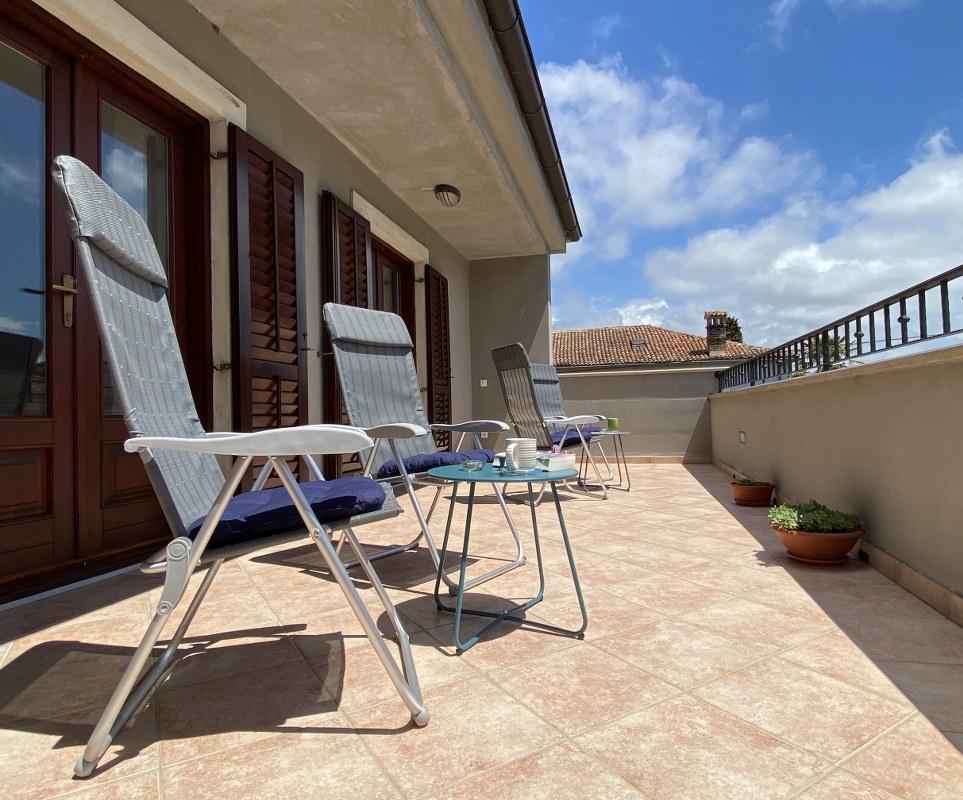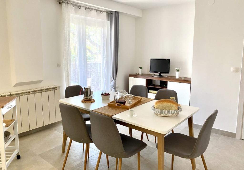 W domu jest 10 minut. spacerem do centrum miasta. Na 1. piętrze: kuchnia z tarasem, łazienka, pokój dzienny (z wygodną kanapą do spania dla 7 i 8 osoby) z dużym tarasem. Na 2 piętrze: 3 pokoje z balkonem, 2 łazienki, pomieszczenie. Dom jest idealny na rodzinne wakacje, dzieci mają ogród, taras, ogród z grillem. Kryty parking. Właściciel mieszka w domu obok.