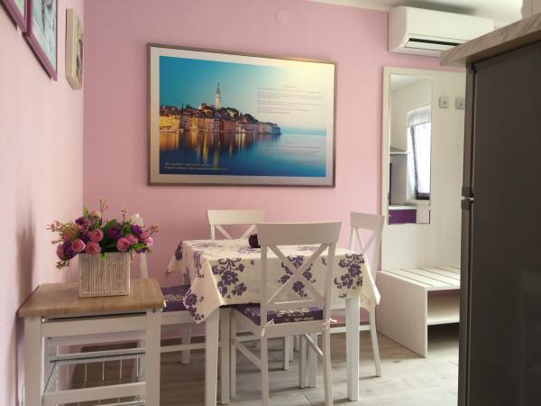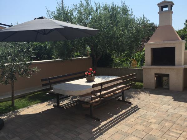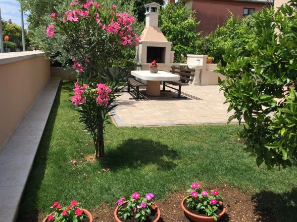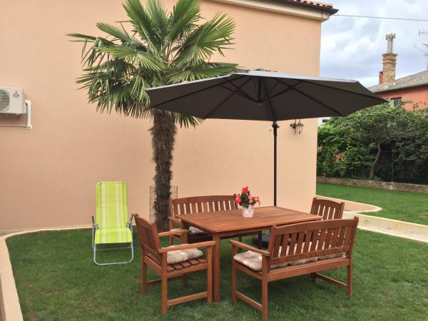 Apartament A1 w nowym budynku VILLA Baric Luksusowy nowy apartament na parterze. Nasz obiekt wyposażyliśmy w celu zaspokojenia potrzeb współczesnym gość, takie jak sprzęt i wygląd, które docierają na komfort i wygodę. Obejmuje on część wypoczynkową, klimatyzację, telewizję satelitarną, dostęp do Internetu, w pełni wyposażoną kuchnię z kuchenką mikrofalową, czajnik, ekspres do kawy, zmywarka, toster, łazienka z prysznicem, pralka, suszarka, żelazko i deska do prasowania , suszarka do włosów, sypialnia z podwójnym łóżkiem (szerokość 160 mm), sejf. W ogrodzie znajduje się miejsce do biesiadowania i krzesła, maksymalny komfort i latem przyjemności. Centrum Rovinj znajduje się zaledwie 5 minut, a odległość do Rovinj Plaża 1 km. Transport publiczny jest 400 m, a najbliższy sklep spożywczy, restauracje, pogotowie ratunkowe, apteka znajdują się w bliskim sąsiedztwie, odległość 200-300 m stacja benzynowa. - 200 m. Lotnisko znajduje się w Pula, 30 km.