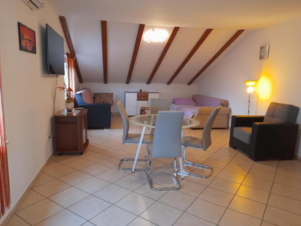 Apartament bardzo czysty, zadbany, kuchnia (aneks) wyposażony w niezbędny sprzęt do przygotowania posiłku-w zupełności wystarczający, dodatkowym atutem jest zadaszony taras gdzie w spokoju można posiedzieć przy kawce lub wieczorem przy drinku. Okolica bardzo spokojna można wypocząć. Gospodarz Pani Dragica bardzo miła i pomocna. Do najbliższej plaży max. 15 min spacerem, do miasta ok. 20 minut. Polecam
