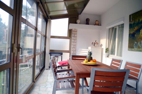 Kompletny i nowoczesny dom w spokojnej okolicy, w otoczeniu zieleni, zaledwie 500 metrów od morza i 900 metrów od centrum miasta. Dom posiada taras i ogród. Na parterze znajduje się kuchnia, pokój dzienny, sypialnia, łazienka, otwarte i zamknięte taras. Na piętrze są dwie sypialnie z tarasami, mały pokój, łazienka i taras do opalania. W ogrodzie znajduje się skrzelowych oraz meble ogrodowe. Darmowy dostęp do Internetu jest dostępny w całym budynku. Zwierzęta są mile widziane, a uprzedzenia.