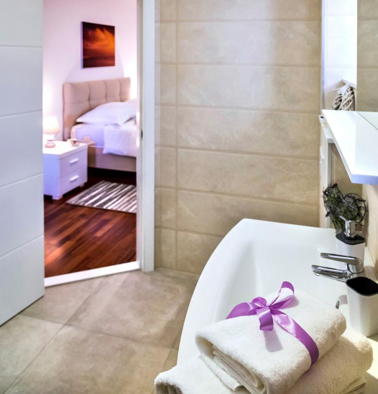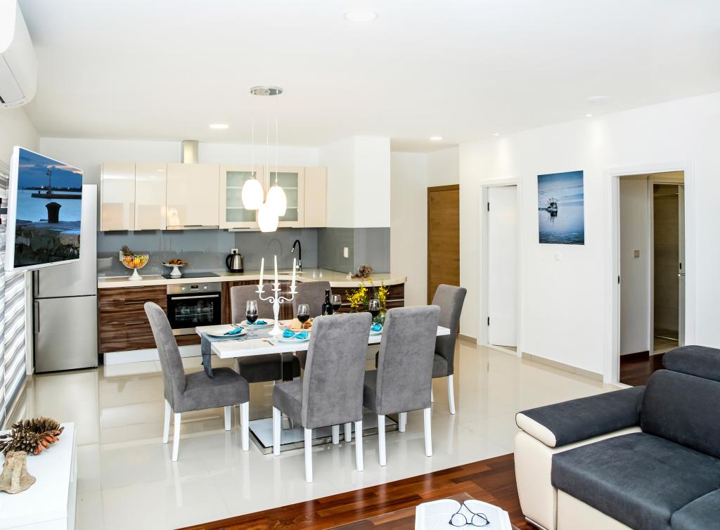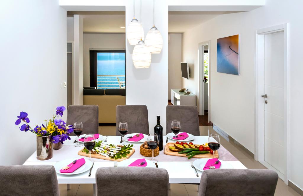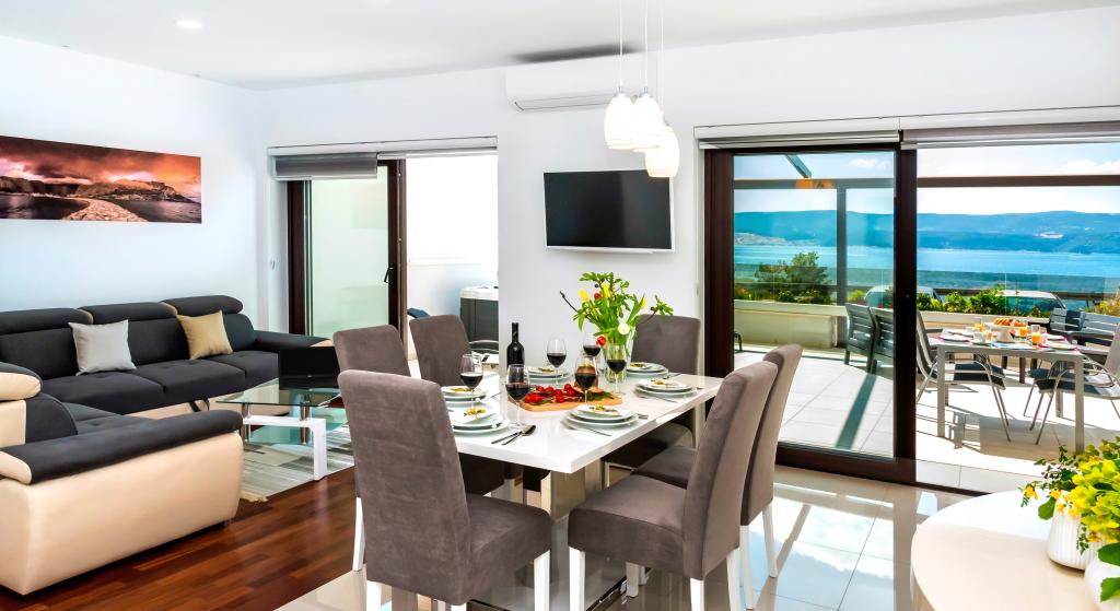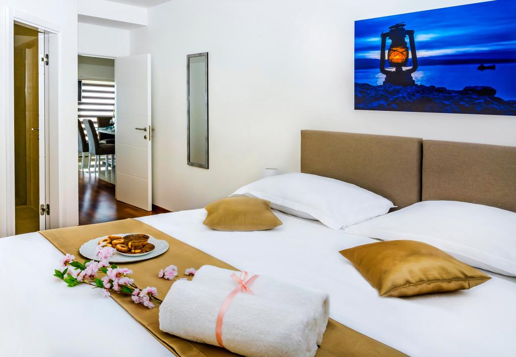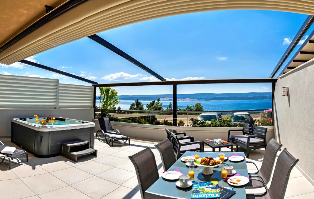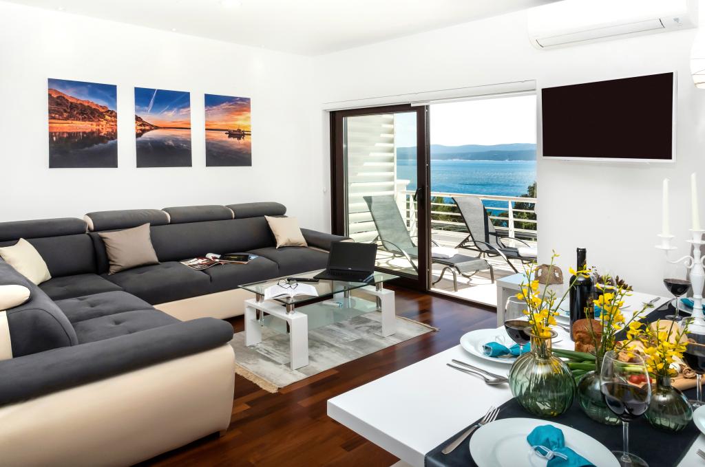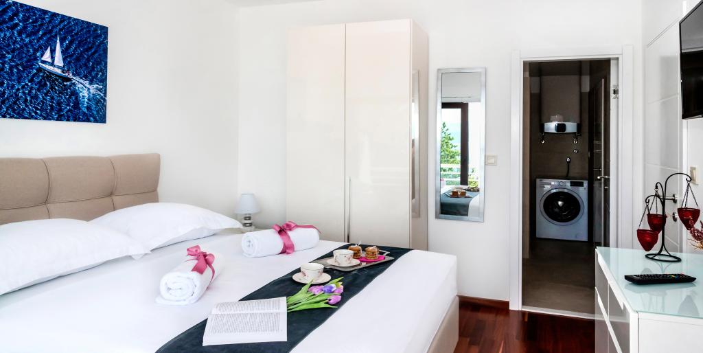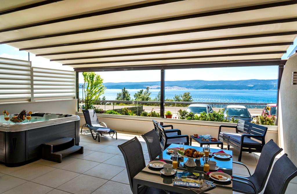 Obiekt „Adria Croatica” posiada 4 luksusowo wyposażone apartamenty z 4 gwiazdkami, widokiem na morze i bezpłatnym parkingiem. Położony jest 100 m od morza, a do plaży można dojechać metrem znajdującym się obok budynku. Apartamenty są w pełni i nowocześnie wyposażone w wysokiej jakości meble. Idealnie nadają się na dłuższy pobyt, a wanny z hydromasażem zapewniają relaks. Apartamenty posiadają 2 sypialnie, 2 łazienki, kuchnię, pokój dzienny, jadalnię, taras lub balkon. Są one wyposażone w dźwiękoszczelne pokoje, klimatyzację, bezpłatny dostęp do Internetu, kanały satelitarne,...