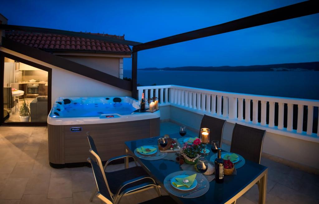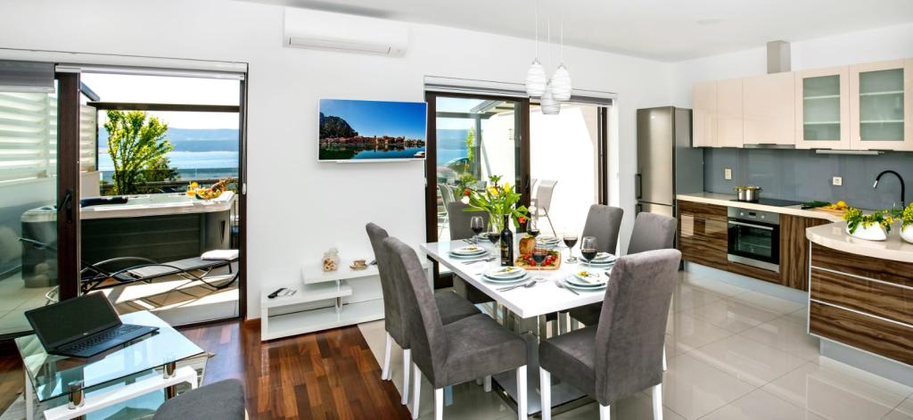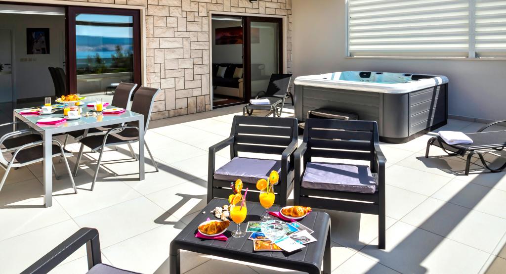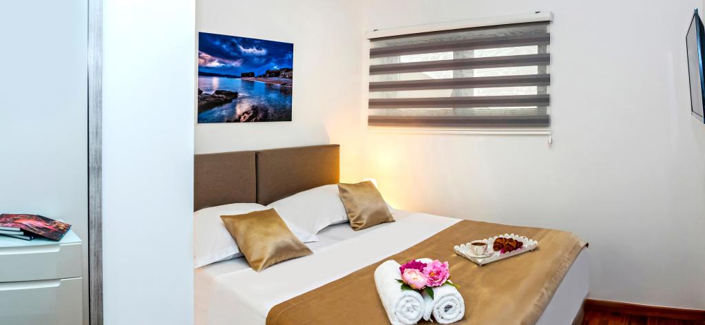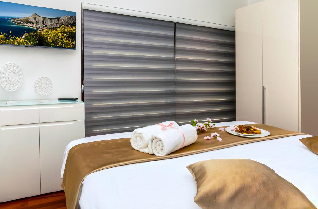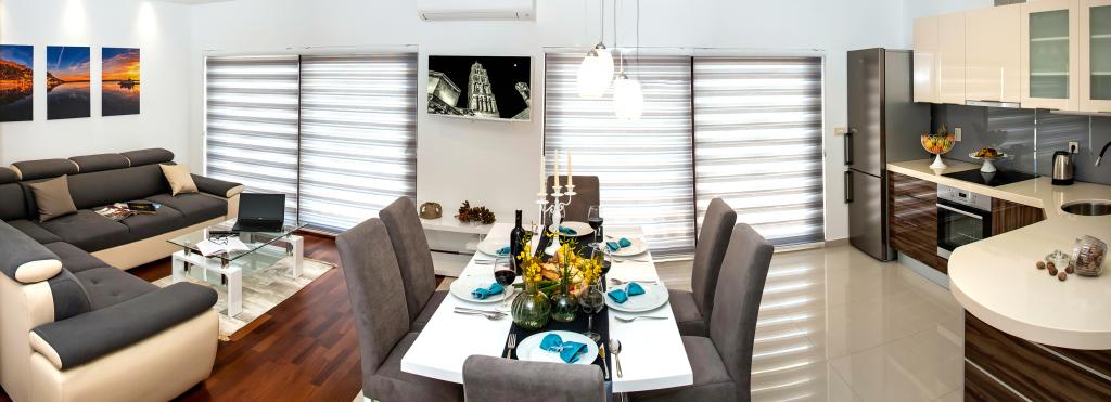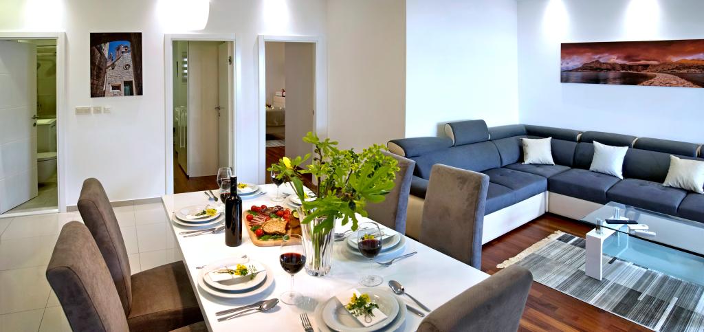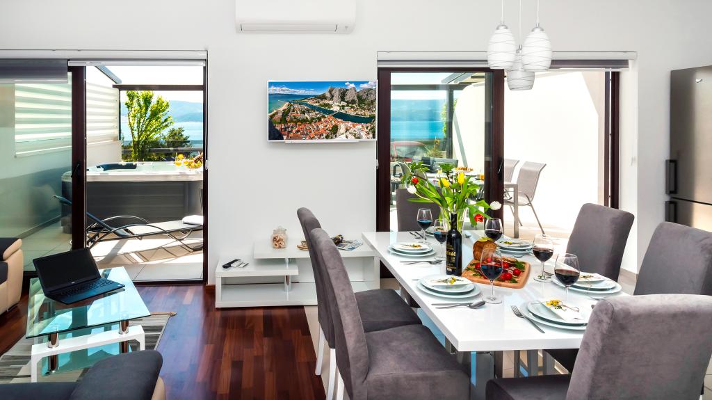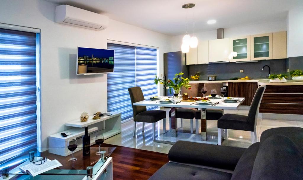Obiekt „Adria Croatica” posiada 4 luksusowo wyposażone apartamenty z 4 gwiazdkami, widokiem na morze i bezpłatnym parkingiem. Położony jest 100 m od morza, a do plaży można dojechać metrem znajdującym się obok budynku. Apartamenty są w pełni i nowocześnie wyposażone w wysokiej jakości meble. Idealnie nadają się na dłuższy pobyt, a wanny z hydromasażem zapewniają relaks. Apartamenty posiadają 2 sypialnie, 2 łazienki, kuchnię, pokój dzienny, jadalnię, taras lub balkon. Są one wyposażone w dźwiękoszczelne pokoje, klimatyzację, bezpłatny dostęp do Internetu, kanały satelitarne,...