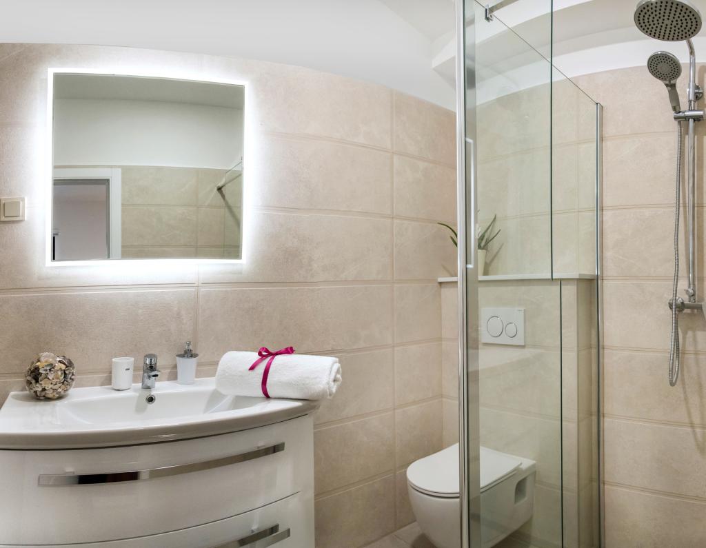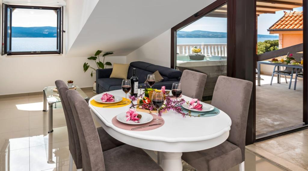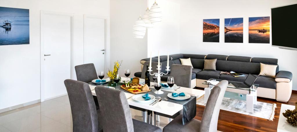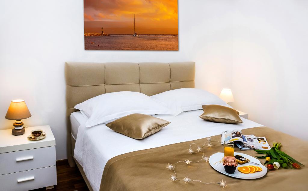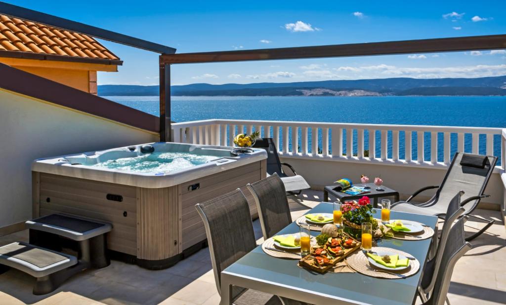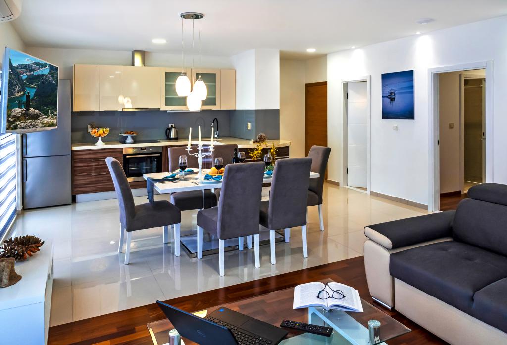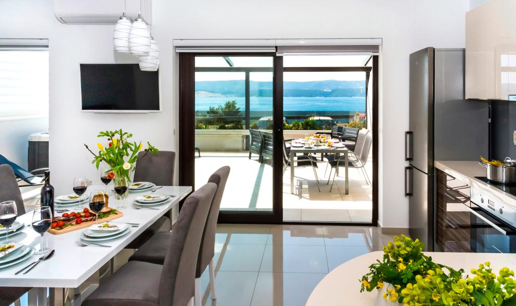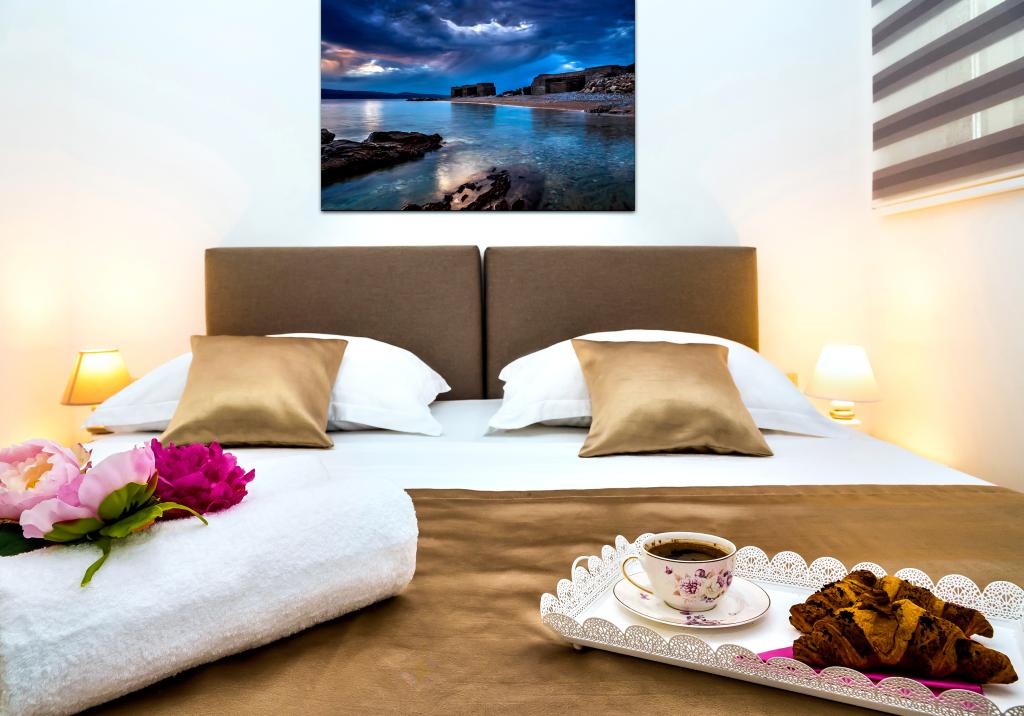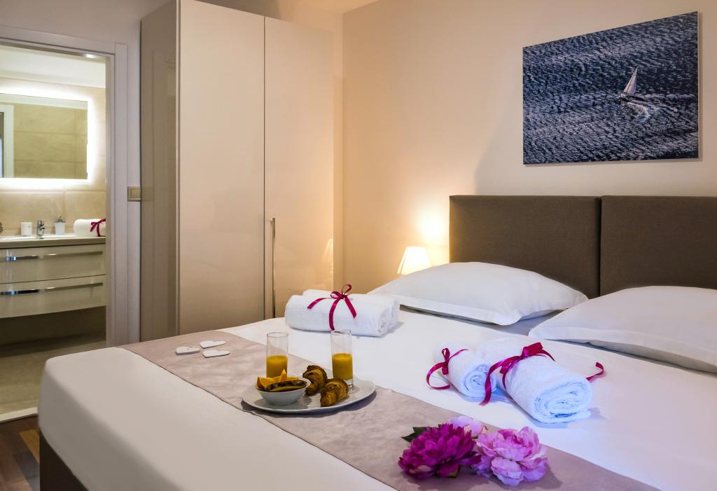 Obiekt „Adria Croatica” posiada 4 luksusowo wyposażone apartamenty z 4 gwiazdkami, widokiem na morze i bezpłatnym parkingiem. Położony jest 100 m od morza, a do plaży można dojechać metrem znajdującym się obok budynku. Apartamenty są w pełni i nowocześnie wyposażone w wysokiej jakości meble. Idealnie nadają się na dłuższy pobyt, a wanny z hydromasażem zapewniają relaks. Apartamenty posiadają 2 sypialnie, 2 łazienki, kuchnię, pokój dzienny, jadalnię, taras lub balkon. Są one wyposażone w dźwiękoszczelne pokoje, klimatyzację, bezpłatny dostęp do Internetu, kanały satelitarne,...