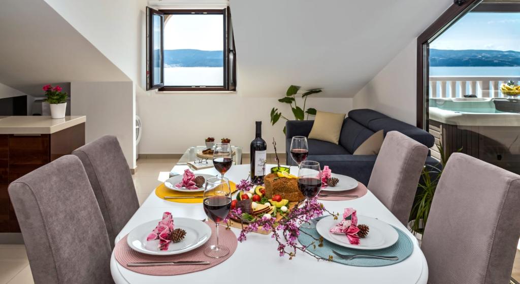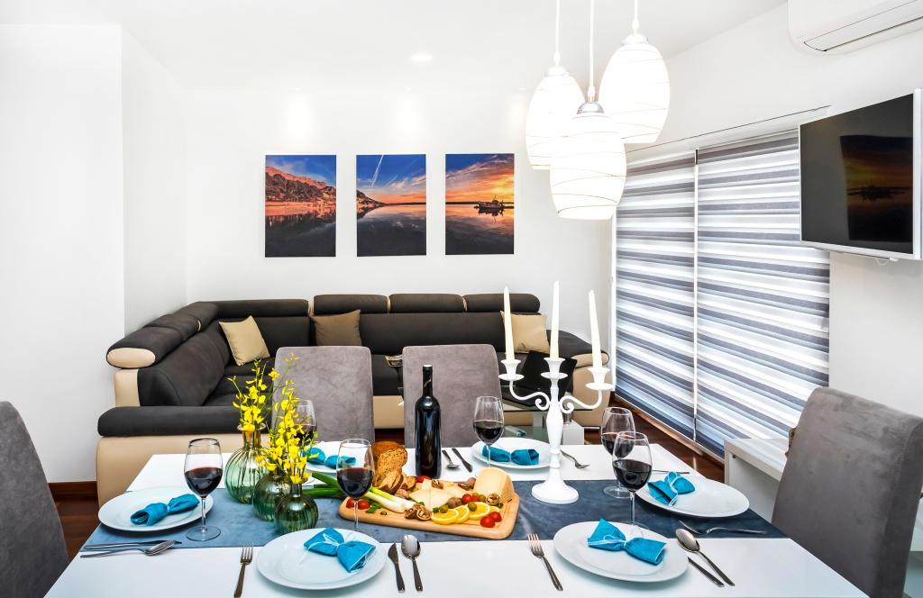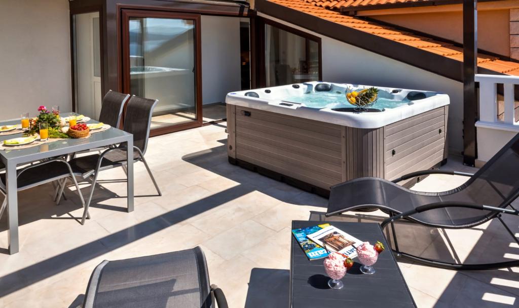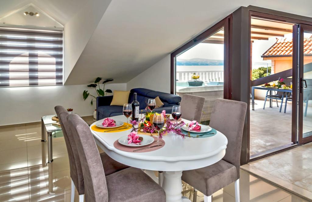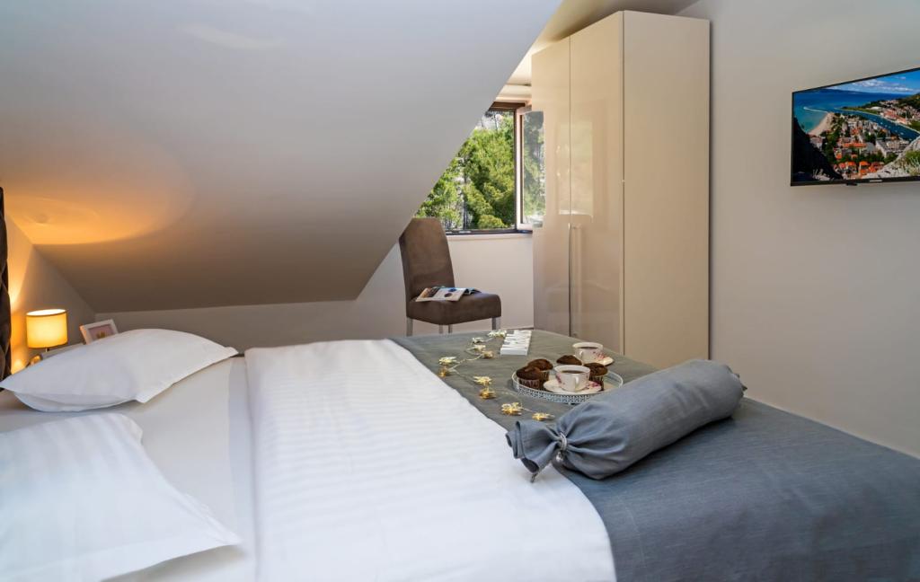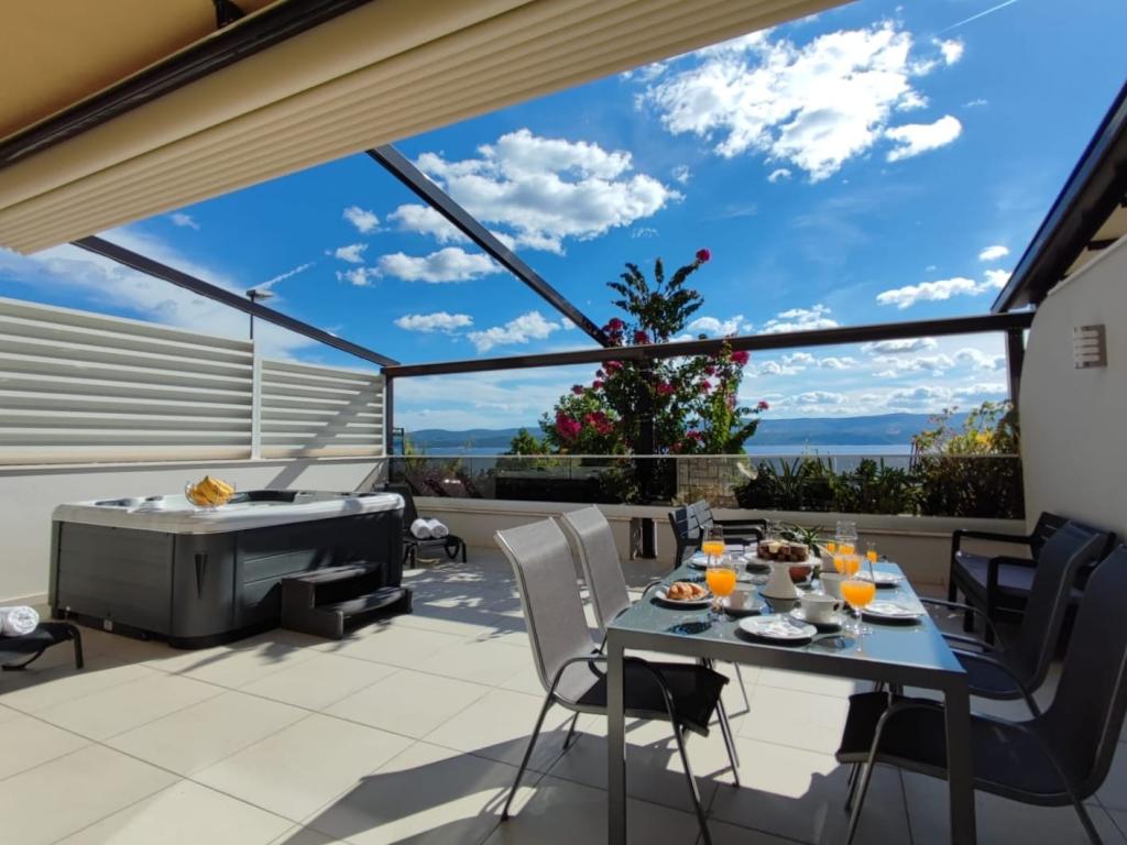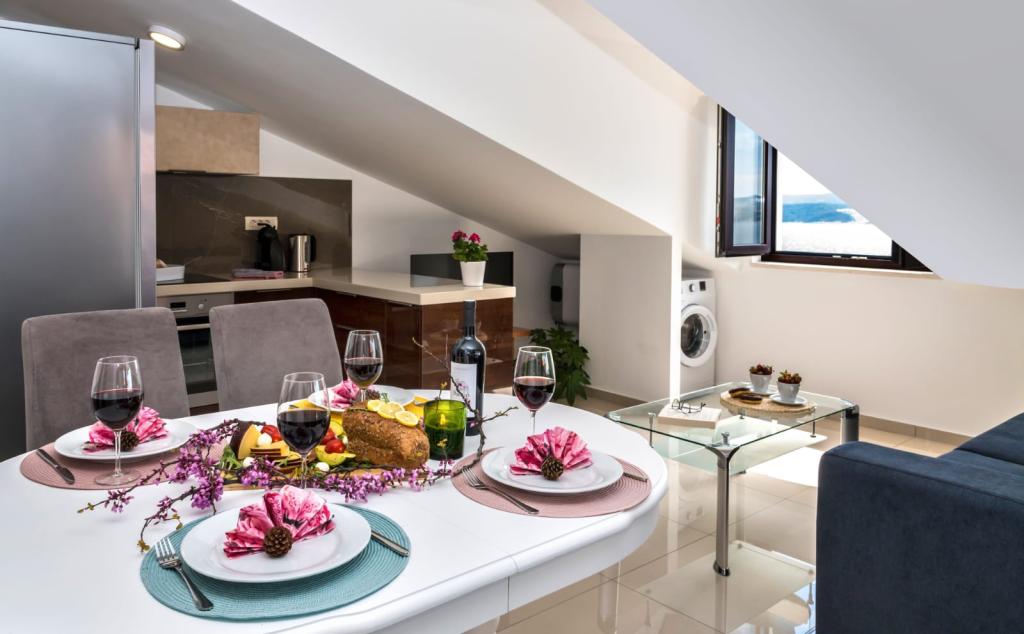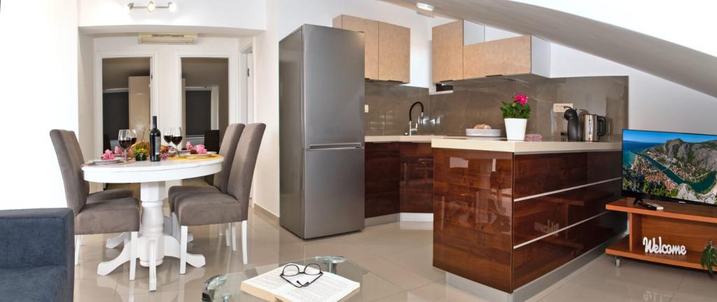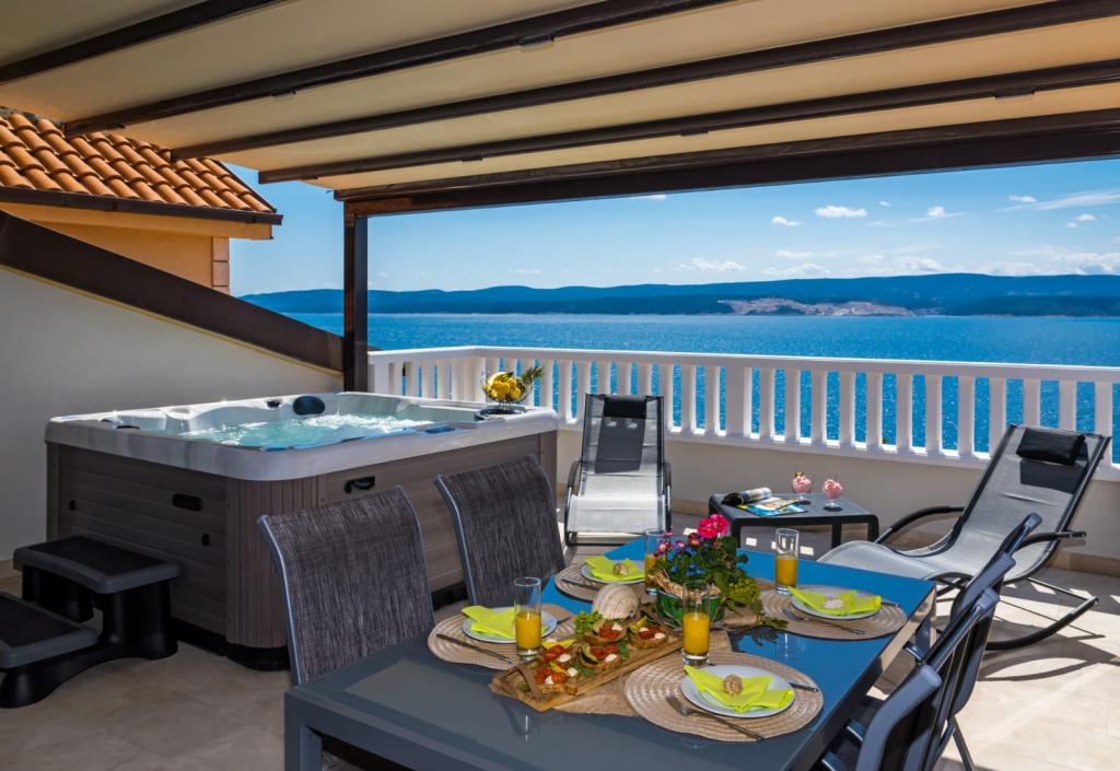 Obiekt „Adria Croatica” posiada 4 luksusowo wyposażone apartamenty z 4 gwiazdkami, widokiem na morze i bezpłatnym parkingiem. Położony jest 100 m od morza, a do plaży można dojechać metrem znajdującym się obok budynku. Apartamenty są w pełni i nowocześnie wyposażone w wysokiej jakości meble. Idealnie nadają się na dłuższy pobyt, a wanny z hydromasażem zapewniają relaks. Apartamenty posiadają 2 sypialnie, 2 łazienki, kuchnię, pokój dzienny, jadalnię, taras lub balkon. Są one wyposażone w dźwiękoszczelne pokoje, klimatyzację, bezpłatny dostęp do Internetu, kanały satelitarne,...