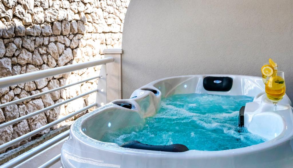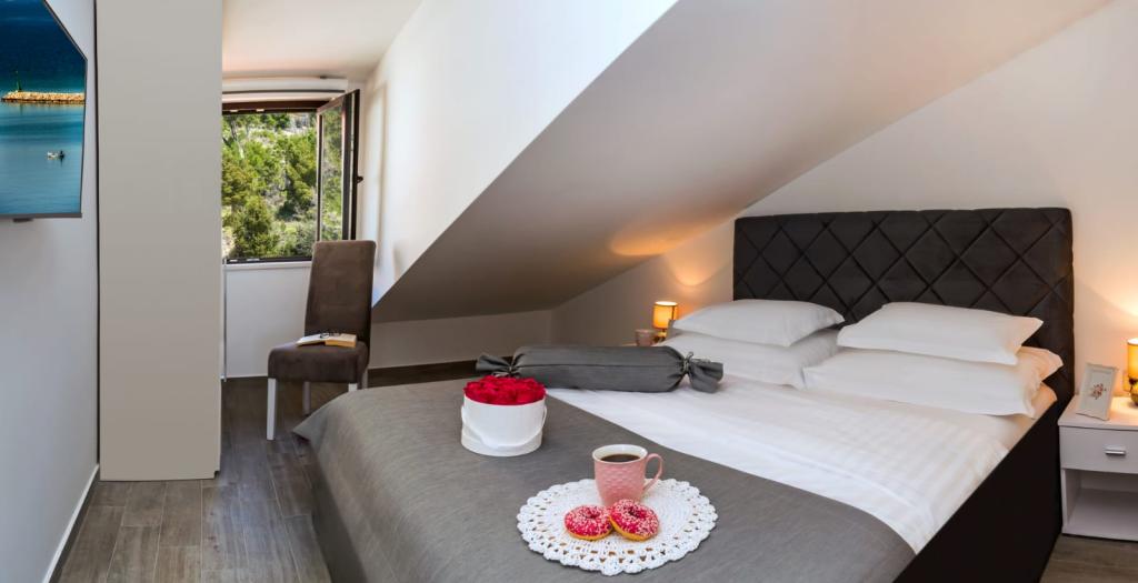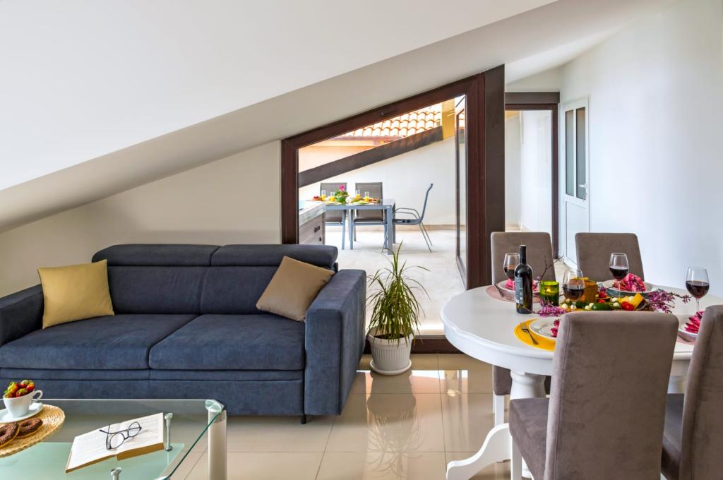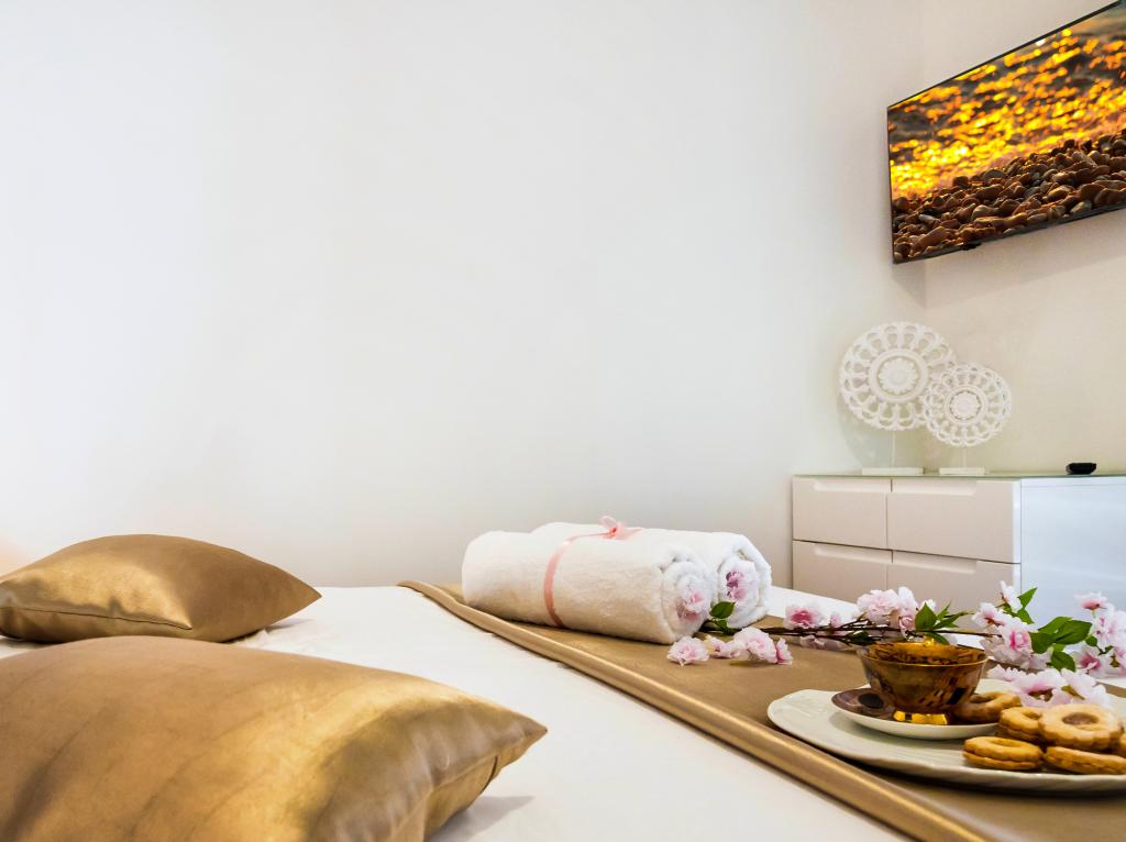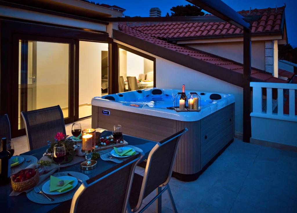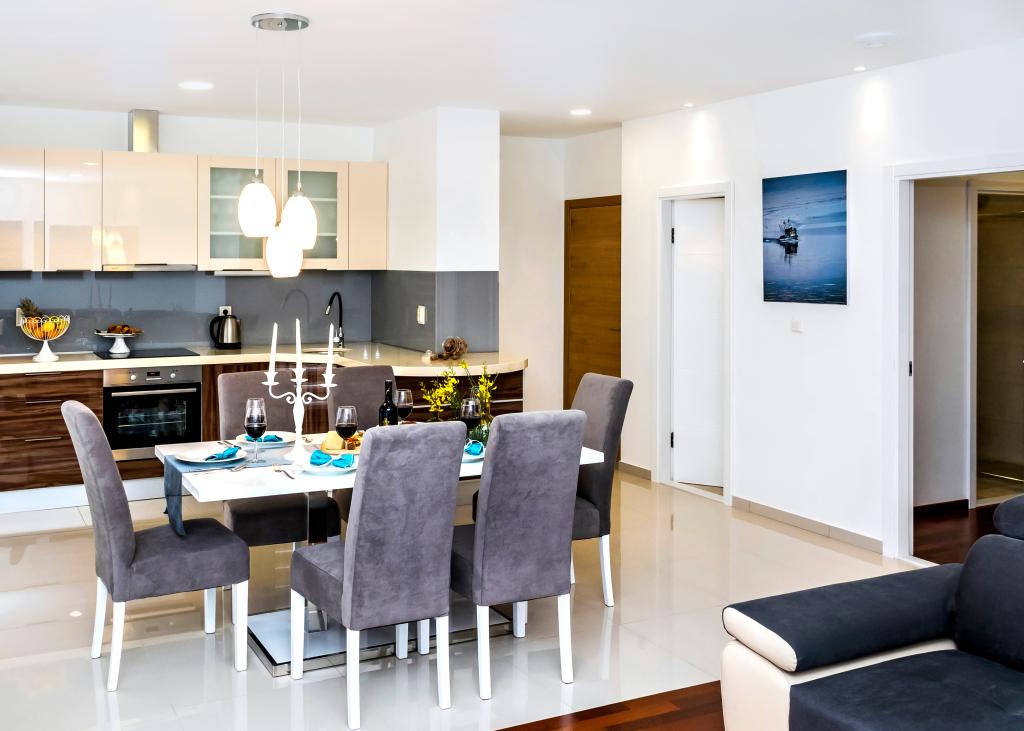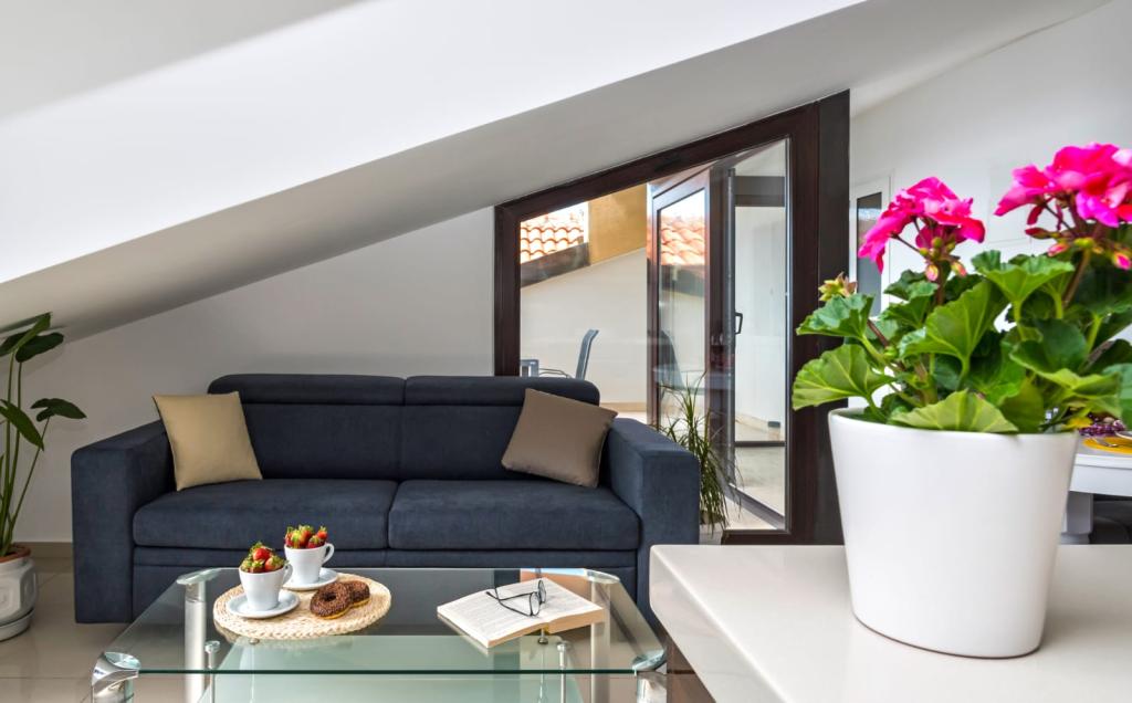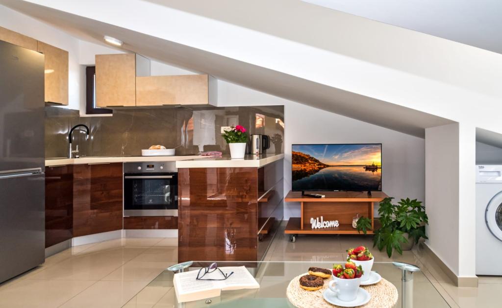 Obiekt „Adria Croatica” posiada 4 luksusowo wyposażone apartamenty z 4 gwiazdkami, widokiem na morze i bezpłatnym parkingiem. Położony jest 100 m od morza, a do plaży można dojechać metrem znajdującym się obok budynku. Apartamenty są w pełni i nowocześnie wyposażone w wysokiej jakości meble. Idealnie nadają się na dłuższy pobyt, a wanny z hydromasażem zapewniają relaks. Apartamenty posiadają 2 sypialnie, 2 łazienki, kuchnię, pokój dzienny, jadalnię, taras lub balkon. Są one wyposażone w dźwiękoszczelne pokoje, klimatyzację, bezpłatny dostęp do Internetu, kanały satelitarne,...