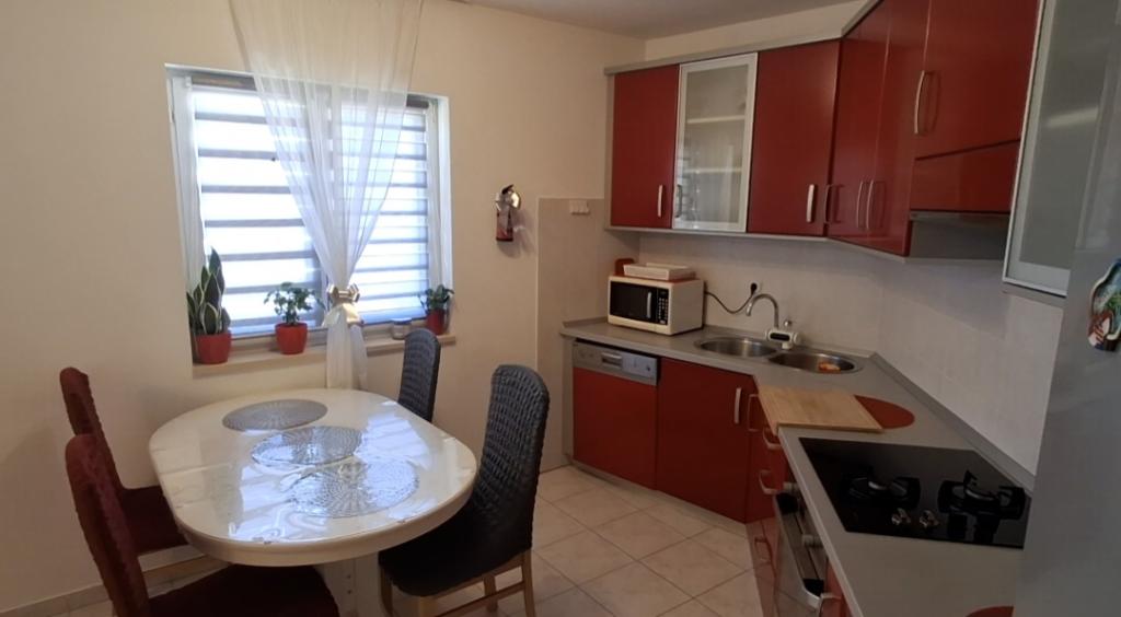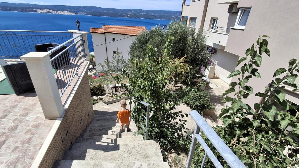 Apartament godny polecenia, wszystko zgodnie z opisem (zmywarka, piekarnik, duża lodówka, bidet). Wspaniały widok na morze z balkonu oraz z kuchni. W jednej sypialni jest dodatkowy balkon z widokiem na morze, a w drugiej okno z widokiem na piękne szczyty górskie. Na posesji jest basen, z również świetnym widokiem na morze i góry. Pobliska plaża (schodami w dół) jest bardzo kameralna, nie było tam dużo osób - mała plaża kamyczkowa oraz wiele miejsc kamienistych/betonowych oraz co ważne zacienionych. Bardzo fajny gospodarz (pozdrawiam Ivo Ciebie oraz rodzinę) - pomocny i miły. Jednego dnia przyniósł nam ciepłe ciasteczka z nadzieniem.