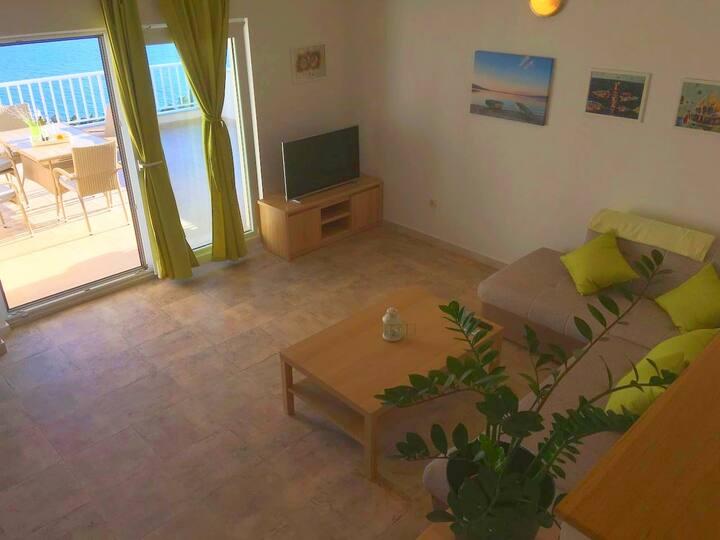 Byliśmy z dziećmi w aksamitnym apartamencie na najwyższym piętrze, który jest ogromny, byliśmy zachwyceni, że jedna z sypialni miała własną osobną łazienkę i była druga łazienka i mała toaleta, co jest świetne dla dużej rodziny. Widok z tarasu na Brač i wyspy zapiera dech w piersiach, niesamowity apartament dobrze wyposażony we wszystko, czego potrzebujesz. Spędziliśmy większość czasu na tarasie, ponieważ ma huśtawkę i leżaki i nie możemy się doczekać powrotu w przyszłym roku, z całego serca polecamy wszystkim, którzy chcą odpocząć i cieszyć się.