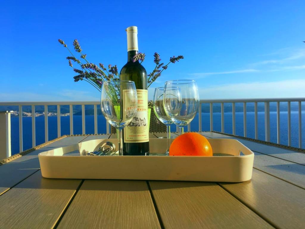 Powitalne drinki i przekąski. Możesz spróbować naszej domowej oliwy z oliwek. W oknach w pokojach moskitiery. Dom posiada wbudowane kolektory słoneczne do podgrzewania wody.