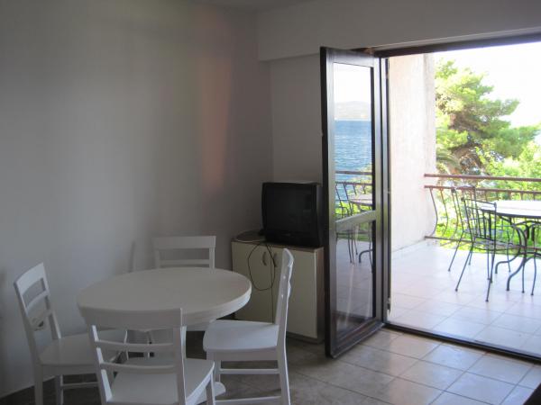 Ruskamen jest spokojny ośrodek turystyczny położony 6 km na południe od Omis, 30 km od Splitu i 30 km od Makarskiej. Dom z 4 apartamentów położony jest bezpośrednio przy żwirowej plaży. Parking jest i znajduje się 50 metrów nad domem. Dostęp jest włączony schodach. Idealne miejsce dla spokoju i relaksu. Jest to szczególnie nadaje się dla rodzin z małymi dziećmi. Mieszkania są w pełni wyposażone. Kawalerki (A i B) znajdują się na parterze i posiada duży taras z leżakami, stół ogrodowy i grill. Mieszkania na pierwszym piętrze (A4 i A2 1) posiada duży balkon z widokiem na morze i wyspę Brac. Centrum ze sklepami, kawiarni, restauracji i hoteli. znajduje się 50 metrów od apartamentu.