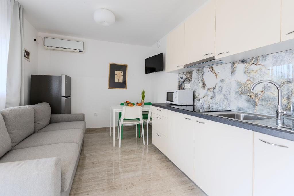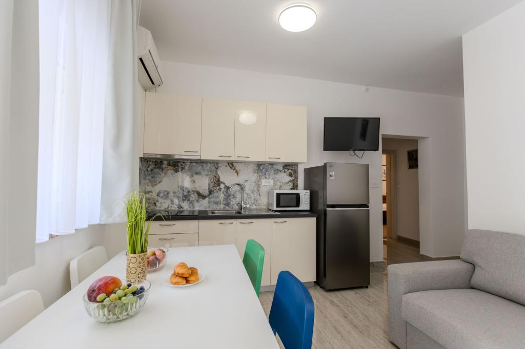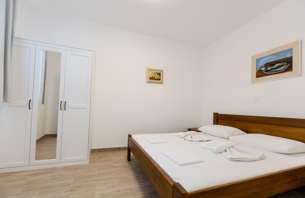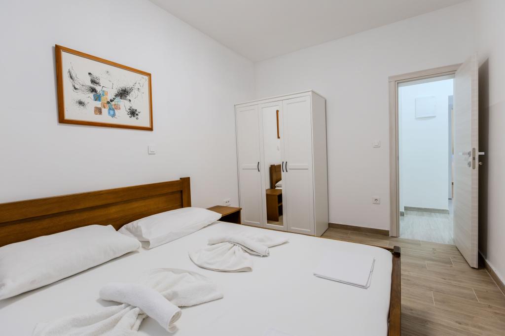 Mieszkanie jest czyste i duże i spełnia wszystkie potrzeby. Pokoje są przestronne, ale w mieszkaniu jest też klimatyzator, który działa świetnie. W mieszkaniu jest dużo gniazdek i wszystko co potrzebne (np. naczynia itp.). Mieszkanie posiada ładny i przestronny balkon z ładnym widokiem, stół i wiele krzeseł. W pokoju znajdują się szafki nocne oraz lampki, które gasną w zasięgu ręki nad łóżkiem. Łazienka ma ładne lustro i jest dość duża. Lokalizacja jest idealna. Rynek, plaża, piekarnia, kawiarnia i lodziarnia znajdują się w promieniu 5 minut od apartamentu. Drzwi są bezpieczne, a mieszkanie też wydaje się bezpieczne.
