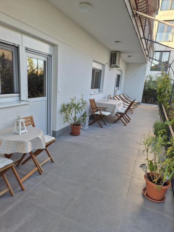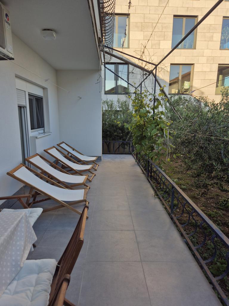 Apartament dla 6 osób z dużym tarasem, drugi rząd do morza. Do miasta Trogir można dojść z apartamentu w 8 minut, a do pierwszej plaży – w 5 minut. W bezpośrednim sąsiedztwie znajdują się restauracje, bary i sklepy.