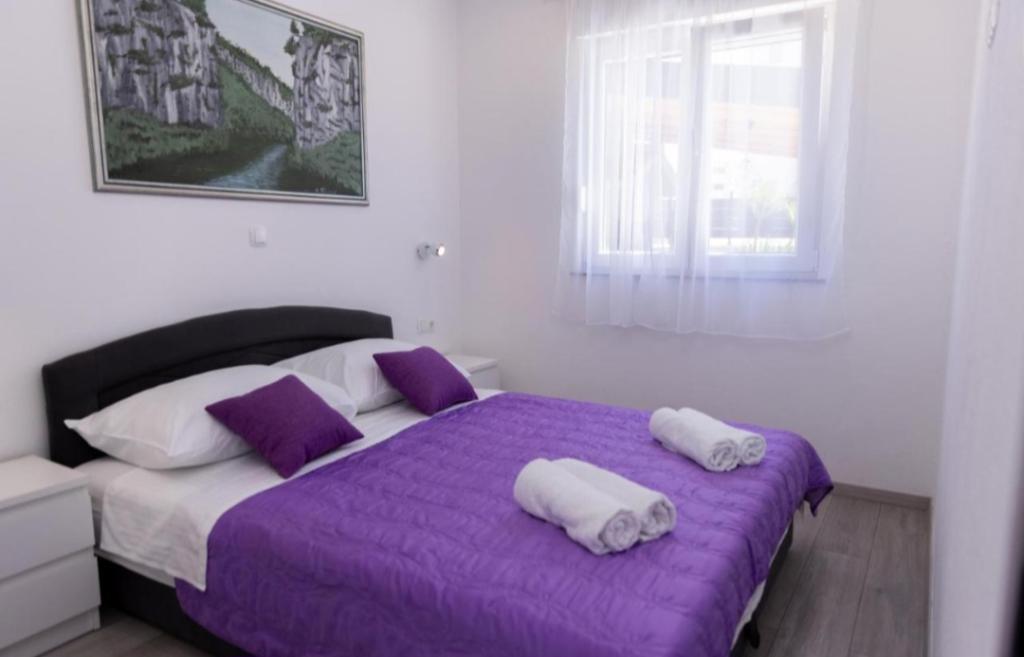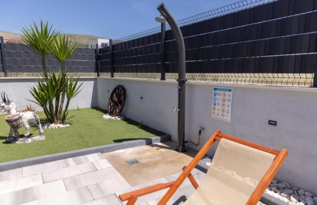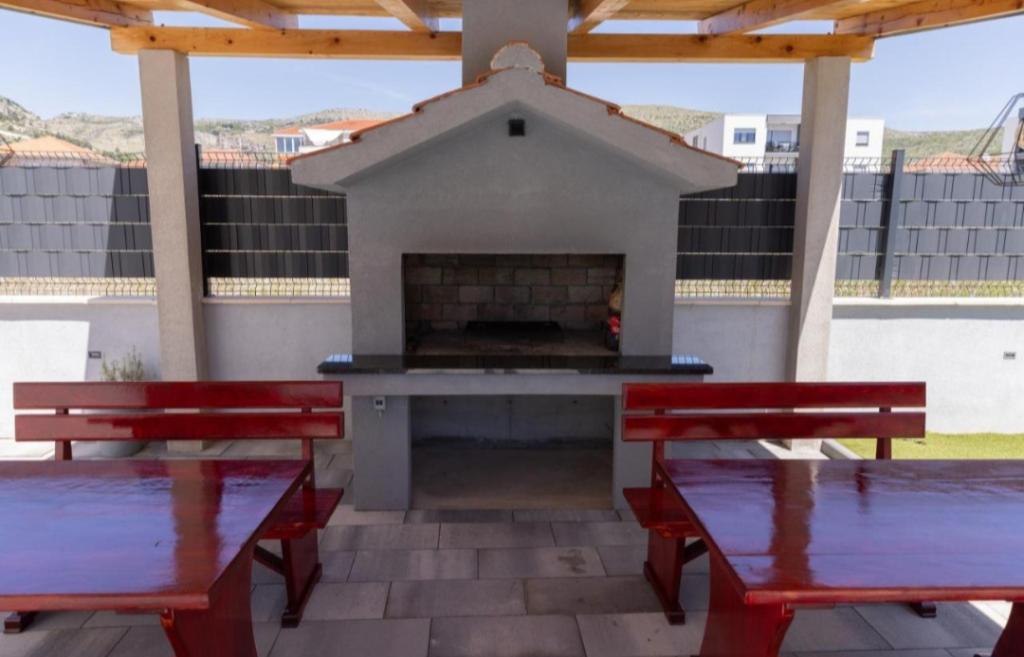 Nowo umeblowana willa w Seget Donji. Zawiera 2 apartamenty o powierzchni 65 m2 każdy. Każdy apartament posiada jedną łazienkę, dwie sypialnie z podwójnymi łóżkami. Każdy apartament posiada przestronny salon. Willa posiada ogród o powierzchni 168 m2, basen o powierzchni 30 m2, grill na świeżym powietrzu, leżaki do odpoczynku, bramki do gry w piłkę nożną na basenie. Obydwa apartamenty mają widok na basen i morze. Przystań Baotić oddalona jest od obiektu o 100 metrów. W odległości 50 metrów znajduje się sklep Tommy, w którym znajduje się sklep sprzedający świeże pieczywo, ciasta i świeże mięso. Restauracja Barba, kawiarnia i apteka znajdują się 50 metrów od obiektu. Willa położona jest na granicy Trogiru i Seget Donjeg.