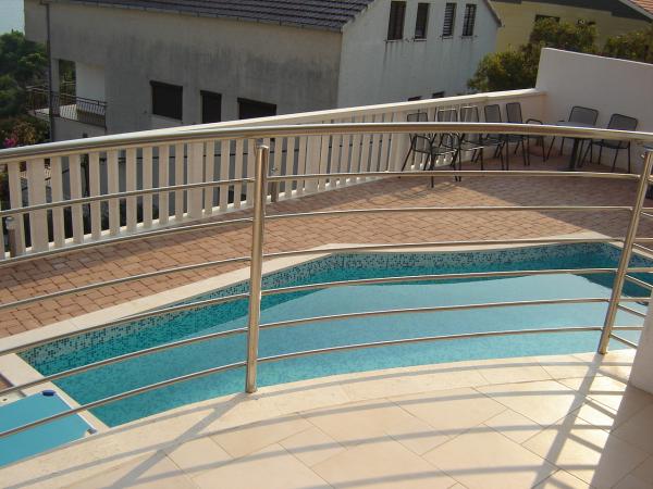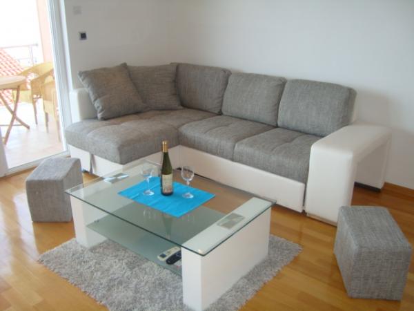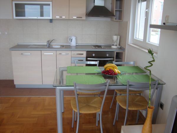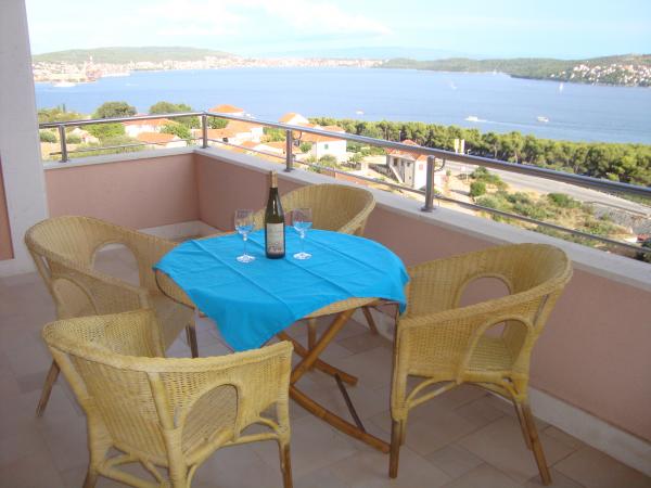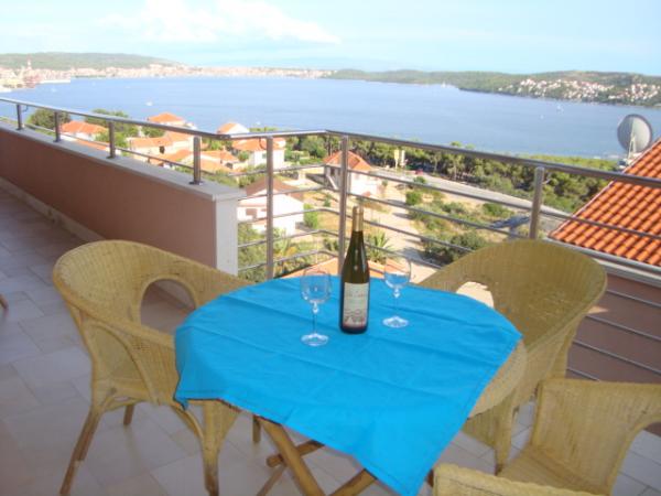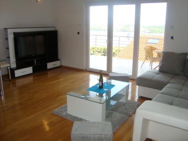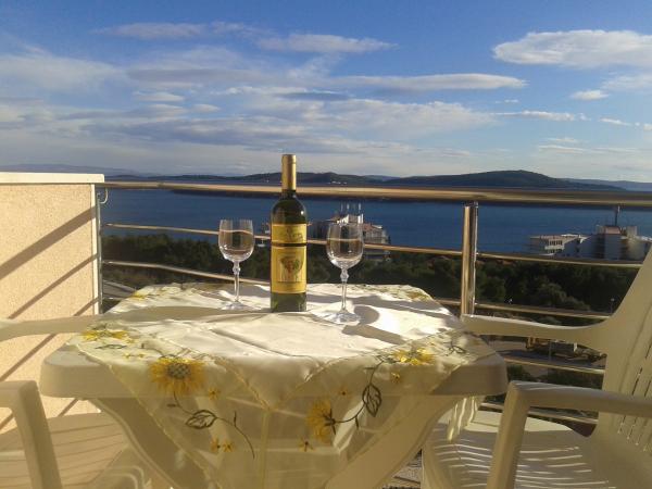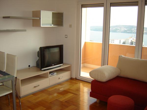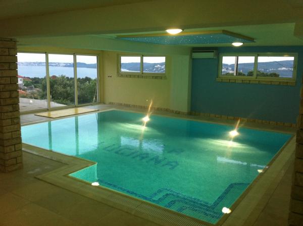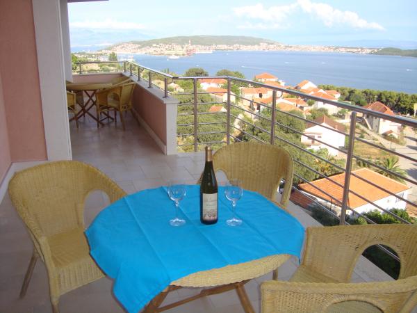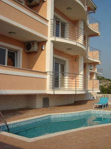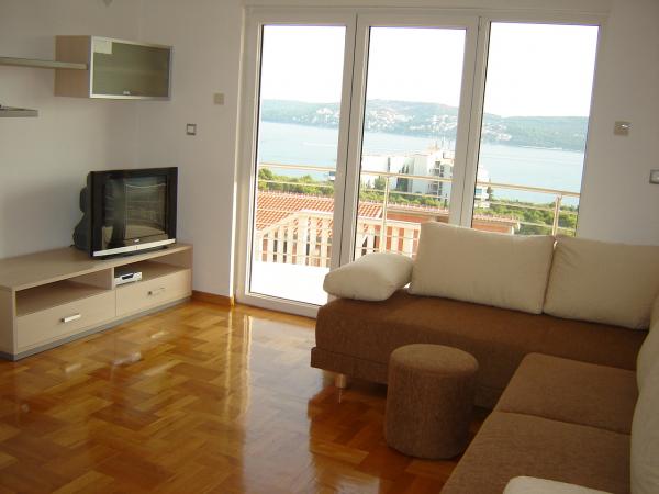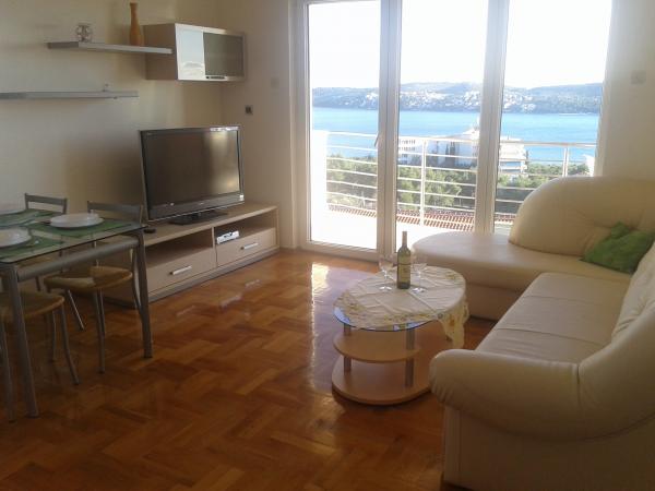 Nowo wybudowane apartamenty, w pełni wyposażone, z pięknym widokiem na morze i wyspy. W budynku znajduje się 14 apartamentów, kryty i odkryty basen, restaurację na śniadanie, recepcji, kawiarni i innych. Znajdujemy się 400 m od plaży. W pobliżu znajdują się obiekty sportowe: tenis, siatkówka plażowa, narty wodne, żeglarstwo, jazda konna, itp ... (200-300). Przystanek autobusowy znajduje się 150m, 400m lokalne do wysyłki. Marina łodzi jest 1, 5 km, a lotnisko 5km. Park Narodowy Jeziora Plitwickie są 45 km od Trogir UNESCO 1, 5 km, Dioklecjana w Splicie 25 km.