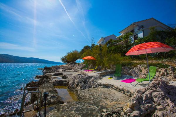 W Brugi możesz poczuć się jak w domu. Atmosfera i wyposażenie wystarczą na relaks i odpoczynek. Wszystko jest proste, zadbane i nowo wyposażone. Apartament Brugi A6 jest idealny dla czteroosobowej rodziny, ponieważ ma dwa pokoje dwuosobowe i sześć osób pozostaje niezakłóconych dzięki rozkładanej sofie w salonie połączonej z tarasem, na którym znajduje się stół ogrodowy z krzesłami i grillem do spotkań towarzyskich i relaksu. Na tarasie ustawiono leżaki, dzięki czemu można podziwiać otwarte widoki na morze i wyspy, a także wschody i zachody słońca. Jest też garaż przeznaczony na jeden samochód. Apartament A3 posiada dwuosobową sypialnię i rozkładaną sofę w salonie połączonym z kuchnią. Oferuje możliwość pobytu 3 osób. Grill znajduje się w dolnej części domu. Goście mają możliwość zaparkowania samochodu na podwórku. Można go również wypożyczyć w całości. Jeśli masz dużą rodzinę lub firmę, możliwość wynajęcia obu mieszkań. Wszystko razem, najlepsze !!