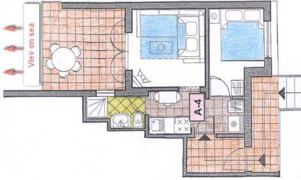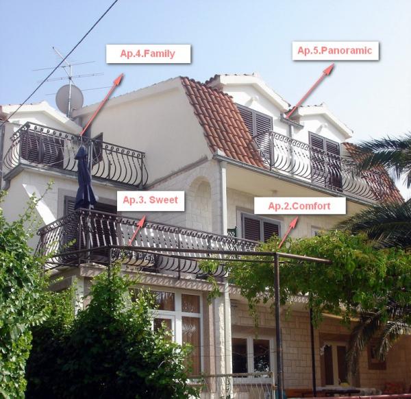 Apartamenty Nena A i B znajduje się w małej miejscowości Seget Vranjica, która znajduje się około 4 km od Trogiru. W domach A i B, które są podłączone jako bliźniak budynku znajduje się zaledwie 100 m od morza 10 apartamentów. Plaże znajdują się 150-200 m od mieszkania, piaszczysta, skalista, ale również przystosowany dla dzieci. Wszystkie apartamenty posiadają balkon lub taras z widokiem na morze, z wyjątkiem Ap. 6, który ma tylko bez widoku na morze. W odległości 20 m od domu znajduje się rynek z jedzeniem (owoce i warzywa, mięso, zszywacze). Z punktu wyjścia z łodzi kilka razy do Don i nocy do hotelu miód (2 km) i Trogiru (4km). Każdy gość dostaje mieszkanie w cenie parkingu, większy Mieszkanie Parking na 2 samochody. Cena obejmuje: zakwaterowanie w apartamencie, klimatyzację, opłata klimatyczna, internet i WiFi, parking, kompletnego pościeli i ręczników na dwa mieszkania na osobę. Pościel i ręczniki zmieniane są co 7 dni.
