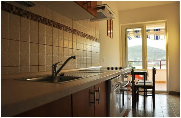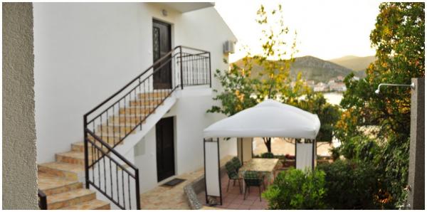 Apartamenty położone są w Vuko Seget Vranjica, 4 km na zachód od miasta Trogir. Mieszkania są umieszczone w drugim rzędzie od morza. Apartament powierzchnia 55 m2, duży taras 20 m2 z widokiem na morze, apartament jest wyposażony w klimatyzację, telewizję satelitarną i bezprzewodowy Internet Apartament B powierzchnia 55 m + Łzy 13 m2 z widokiem na morze, apartmnan wyposażony jest w klimatyzację, telewizję satelitarną i bezprzewodowy Internet. Każdy apartament posiada oddzielny prysznic na zewnątrz i zadaszony parking.