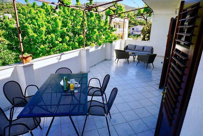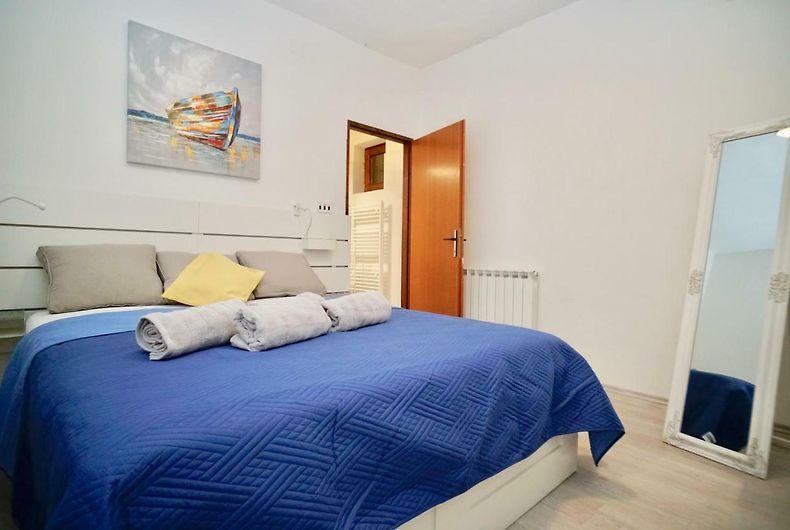 Ten piękny dom wakacyjny położony jest w cichej okolicy, zaledwie kilka kroków od plaży (250 metrów). Dom oferuje przestronne pokoje idealne dla rodzin, z wystarczającą ilością miejsca na komfortowy pobyt. Ciesz się dużym tarasem otoczonym cieniem, idealnym do relaksu i spotkań towarzyskich na świeżym powietrzu. Lokalizacja ta łączy w sobie komfort i bliskość natury, zapewniając idealne miejsce do wypoczynku i spędzenia wakacji z rodziną, a także zapewnia doskonałą odskocznię od obowiązków w spokojnym otoczeniu.