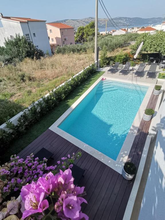 Pokoje Paulina Harmony zlokalizowane są w spokojnej części Seget Vranjica, w otoczeniu bujnej śródziemnomorskiej roślinności i poza wszelkim komfortem, jaki zapewniają pokoje, oferują także basen z tarasem słonecznym, jacuzzi i ogród ze sprzętem do grillowania sprzęt jako miejsce do wypoczynku i siedzenia. Wszystkie pokoje posiadają balkon z widokiem na miejscowość i Morze Adriatyckie, łazienkę z prysznicem, telewizor i klimatyzację oraz bezpłatny bezprzewodowy dostęp do Internetu. Goście mają dostęp do WSPÓLNEJ KUCHNI w celu przygotowania posiłków, w pokojach nie ma kuchni, ale w każdym pokoju znajduje się mała lodówka, ekspres do kawy i podstawowe sztućce. Na terenie obiektu dostępny jest bezpłatny prywatny parking. Należy pamiętać, że apartament typu studio nie ma balkonu ani widoku na morze! Na życzenie istnieje możliwość wstawienia dodatkowego łóżeczka dziecięcego, dla dzieci od 0 do 4 lat dostawka jest bezpłatna, natomiast dla dzieci od 5 do 18 lat pobierana jest dodatkowa opłata w wysokości 15 EUR za dobę. Akceptujemy małe psy do 10 kg bezpłatnie. Najbliższa plaża oddalona jest od obiektu o 900 metrów.