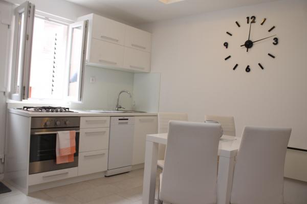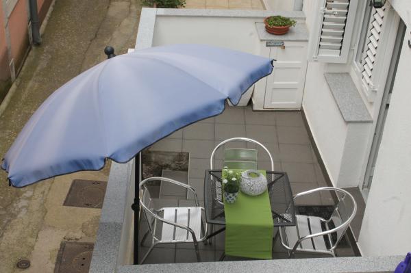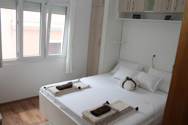 Nowocześnie wyposażone mieszkanie na dwóch kondygnacjach (dom jednorodzinny w rzędzie) z własnym tarasem na Starym Mieście w bardzo spokojnej okolicy i tylko 50 m od centrum, w pobliżu supermarketów, poczty, kantorów, kawiarni i restauracji. odległość od plaży 100 m. Na piętrze znajduje się sypialnia z łóżkiem małżeńskim 160x200 oraz łazienka, a na parterze salon z aneksem kuchennym oraz narożnik, który służy jako dodatkowe łóżko 160x200 . Mieszkanie jest w pełni wyposażone we wszystko do przyjemnego wypoczynku. Przed wejściem znajduje się taras o powierzchni 10 m2, który może służyć jako letnia jadalnia lub miejsce do wypoczynku. W domu obowiązuje zakaz palenia. Zwierzęta nie są akceptowane. Dla gości jest parking na jeden samochód 5 minut spacerem od apartamentu. Po wyjeździe gości apartament jest poddawany szczegółowej dezynfekcji, a także podejmowane są wszelkie środki w celu ochrony gości przed infekcjami. W razie potrzeby w pobliżu dostępna jest całodobowa pomoc medyczna.