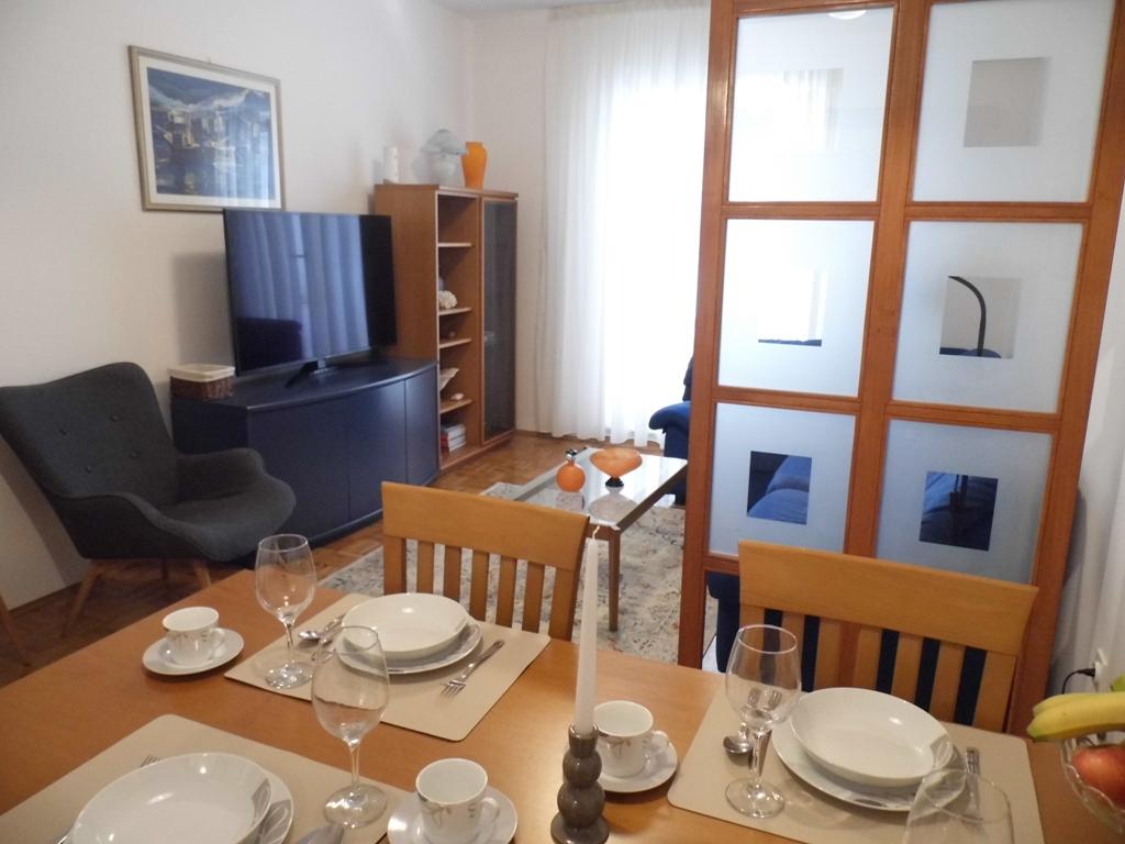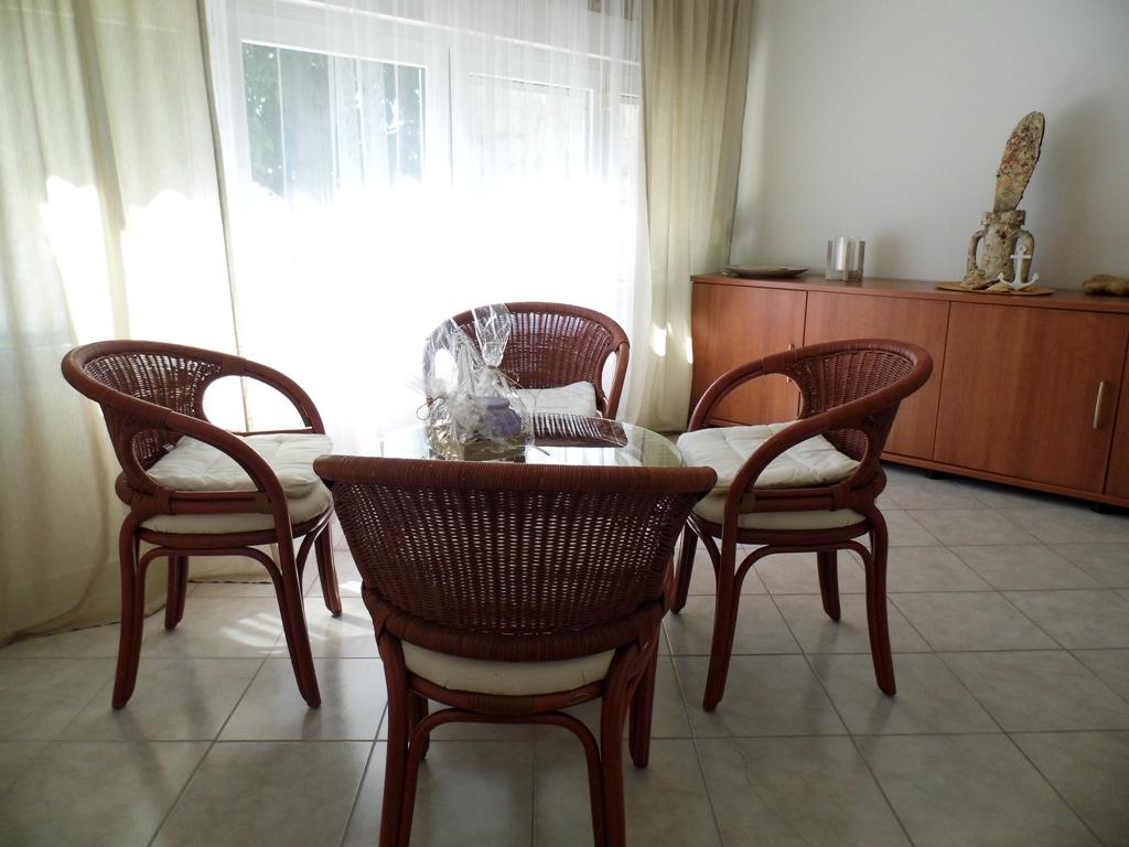 Apartament położony jest nad morzem. Posiada dwie sypialnie, łazienkę, kuchnię oraz jadalnię z salonem. Z tarasu i sypialni roztacza się widok na morze. Apartament wyposażony jest w klimatyzację, telewizor z płaskim ekranem, Wi-Fi oraz pralkę. Kuchnia wyposażona jest w lodówkę, kuchenkę i piekarnik. Apartament znajduje się przy wjeździe do Selce nad morzem, niecałe 30 metrów od pięknej plaży, idealnej dla rodzin z dziećmi. W bezpośrednim sąsiedztwie znajduje się plaża miejska, która ciągnie się aż do samego serca miasta. Do pobliskiej Crikvenicy można dojść spacerem wzdłuż Lungo Mare w zaledwie 15 minut.