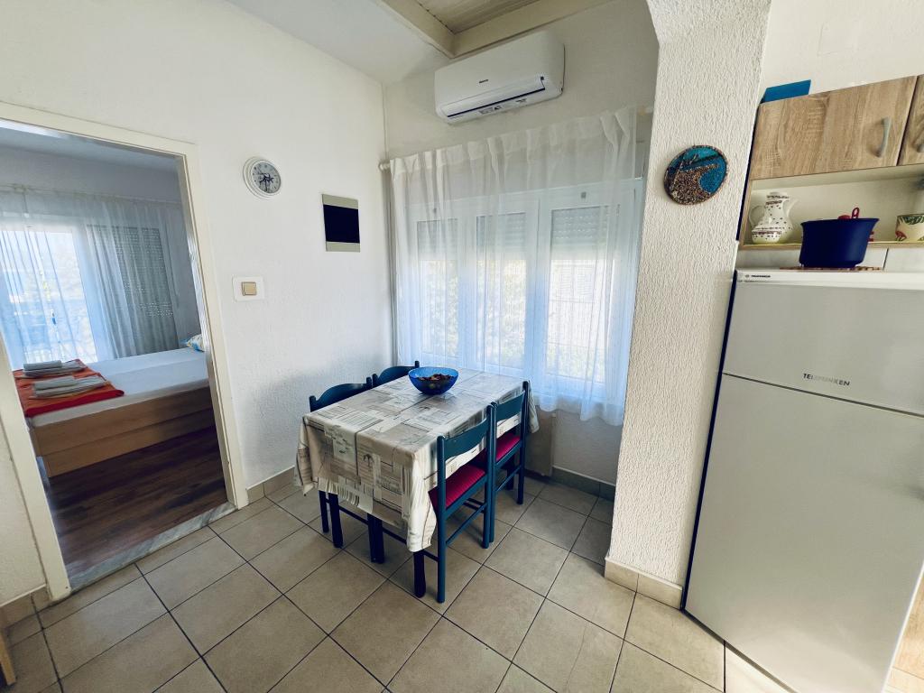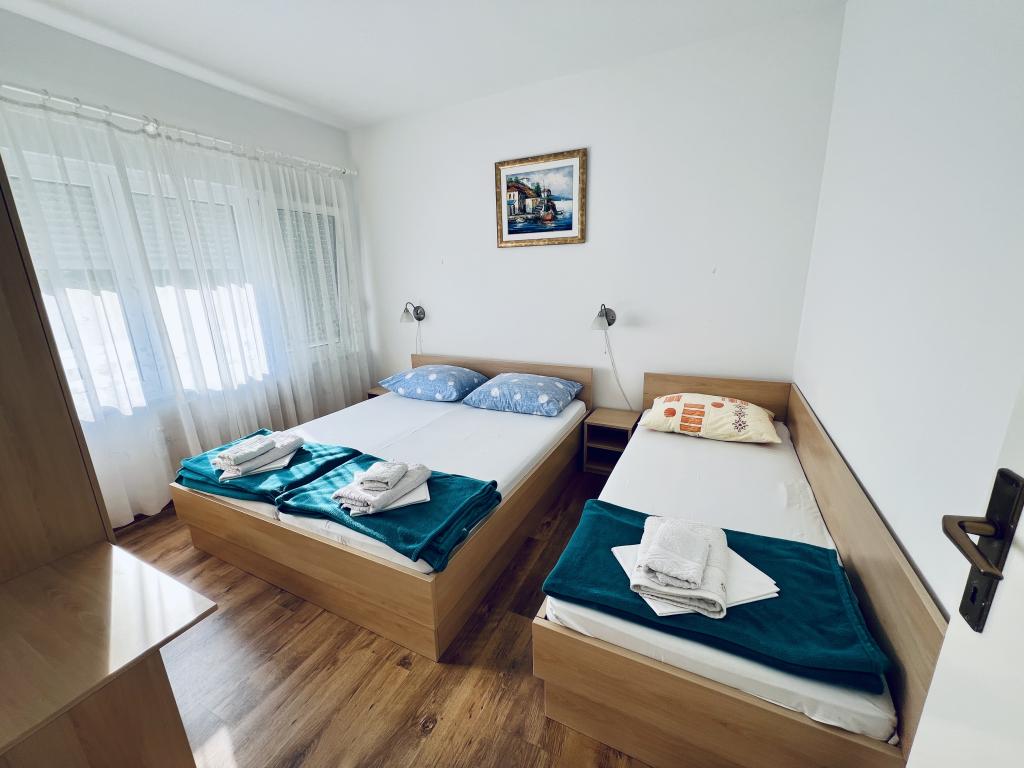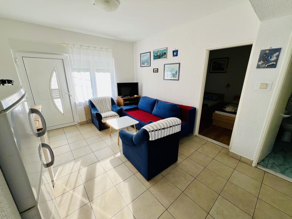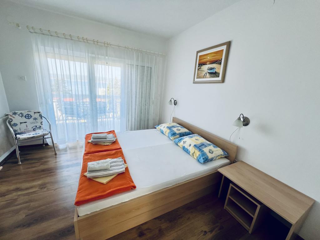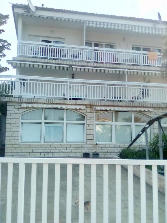 Dom znajduje się 8 min. spacerem od centrum miasta i 5 min. spacerem od pierwszej plaży. Apartament znajduje się na drugim piętrze domu, ma powierzchnię 55 m2 i składa się z salonu z kuchnią i jadalnią, łazienki, dwóch sypialni i balkonu o powierzchni 8 m2 z widokiem na morze. Apartament jest przeznaczony dla 4+1 osób. Kuchnia wyposażona jest w zmywarkę, a łazienka w pralkę. Ekspres do kawy. Kuchenka mikrofalowa. Klimatyzacja.