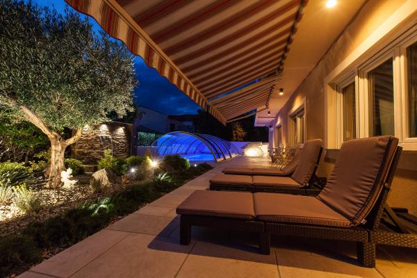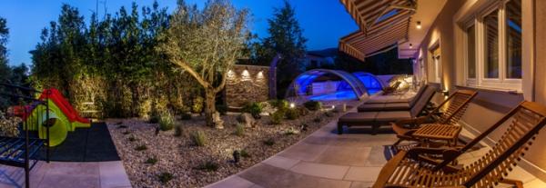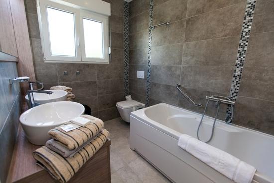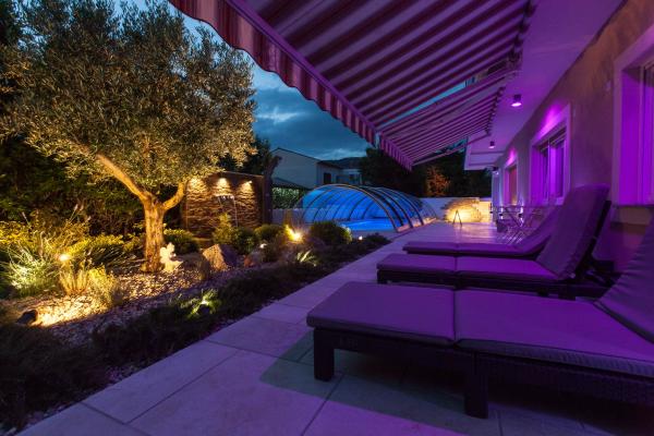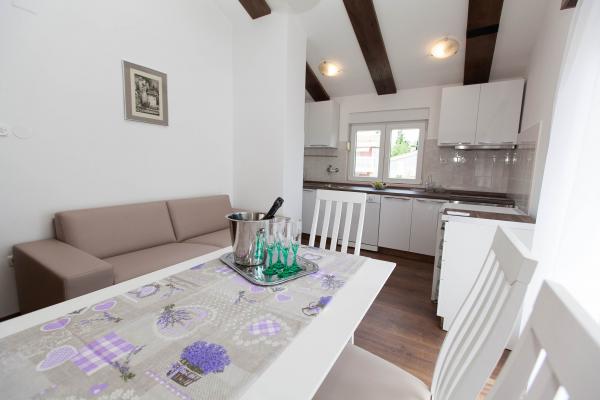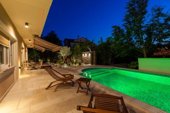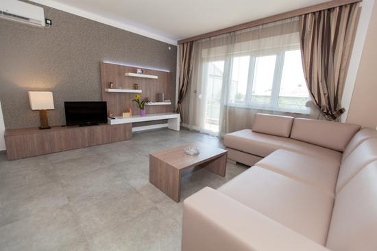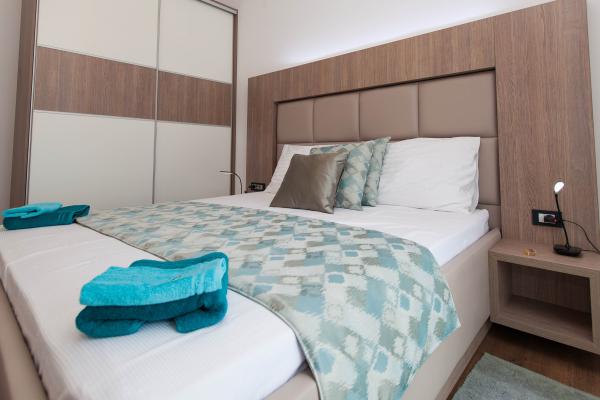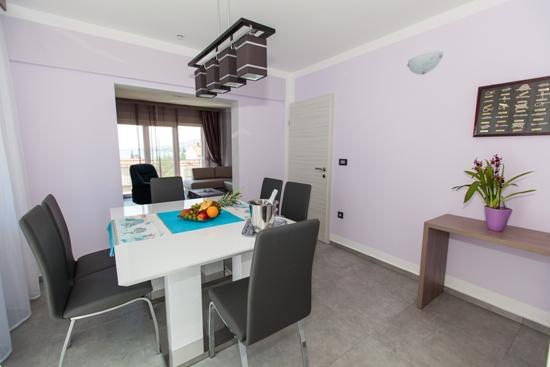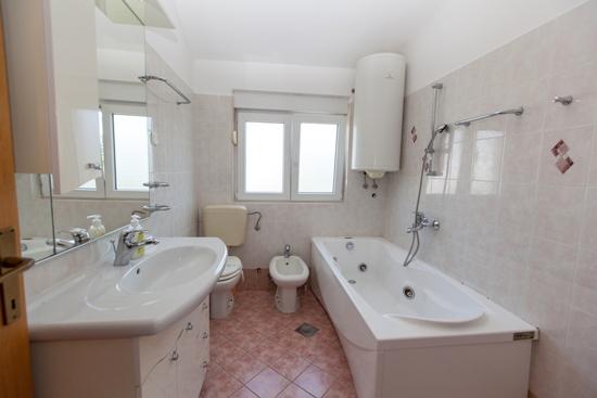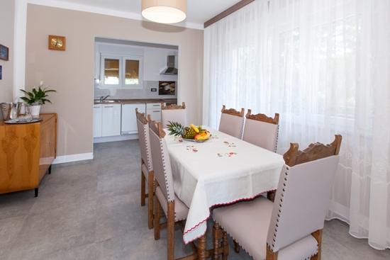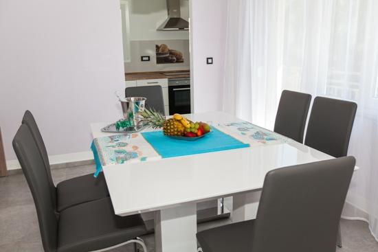 Opłata nie wliczone w cenę.Środowisko domu wzbogacony o śródziemnomorskim ogrodem i dużym basenem z systemem ogrzewania i chłodzenia, hydromasażem, masażem powietrze i licznik prądu pływanie, taras do opalania z leżakami i przestrzeń dla spotkań towarzyskich. W ogrodzie plac zabaw dla dzieci z huśtawką i zjeżdżalnią, w którym anty-stres umieszczone podłoże. Goście bardzo ciche klimatyzatory inwerterowe Split. Goście mogą korzystać z bezpłatnego dostępu do Internetu (Wi-Fi) oraz telewizję satelitarną. Apartamenty dla 4 i 5 jest parking Pomoc w organizowaniu wycieczek i wyjść z tego regionu, jak Jeziora Plitwickie, Krk, Rab, Istria. Liczba łóżek podstawowy - 2 dostawki 2 dodatkowe 15 euro za łóżko / noc. Dzieci w wieku poniżej jednego roku bezpłatnie.
