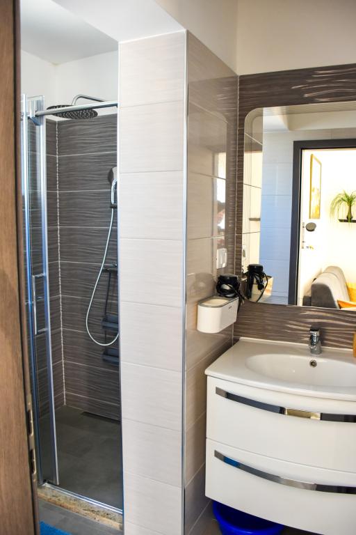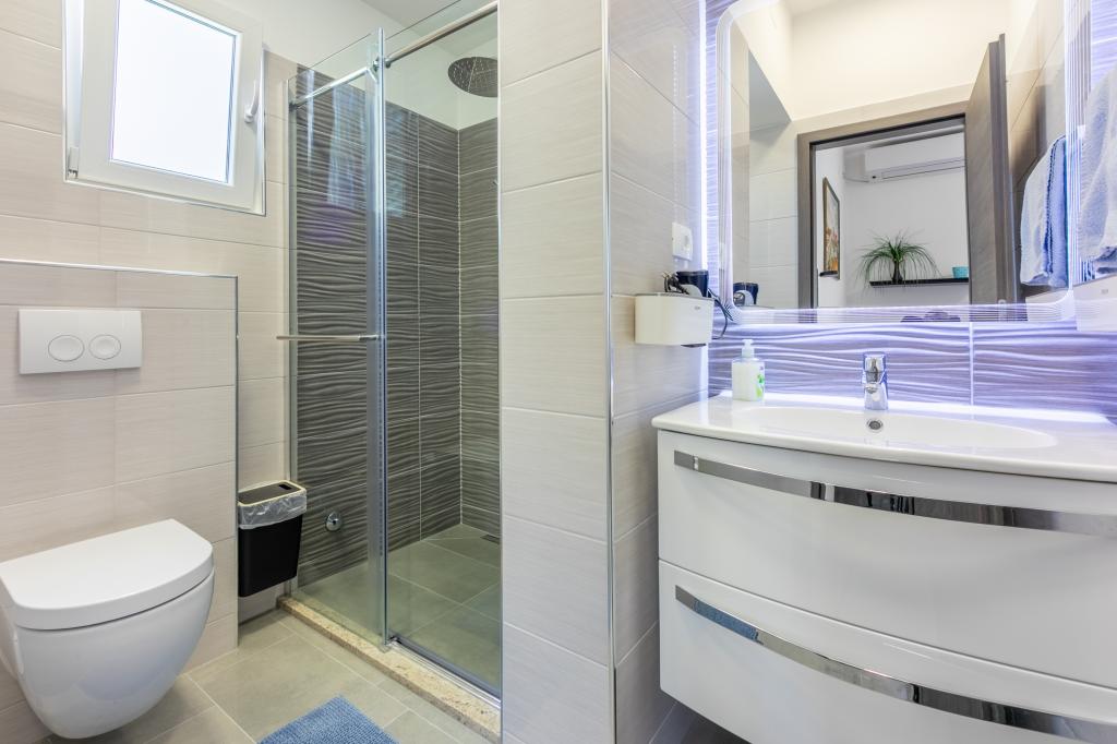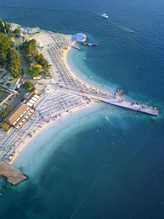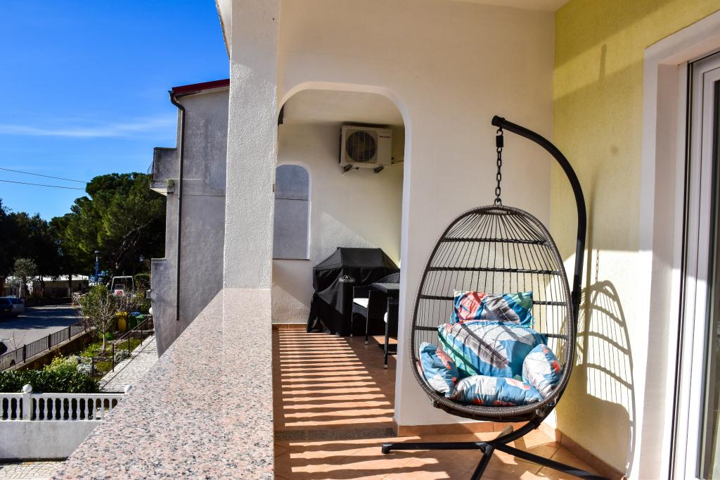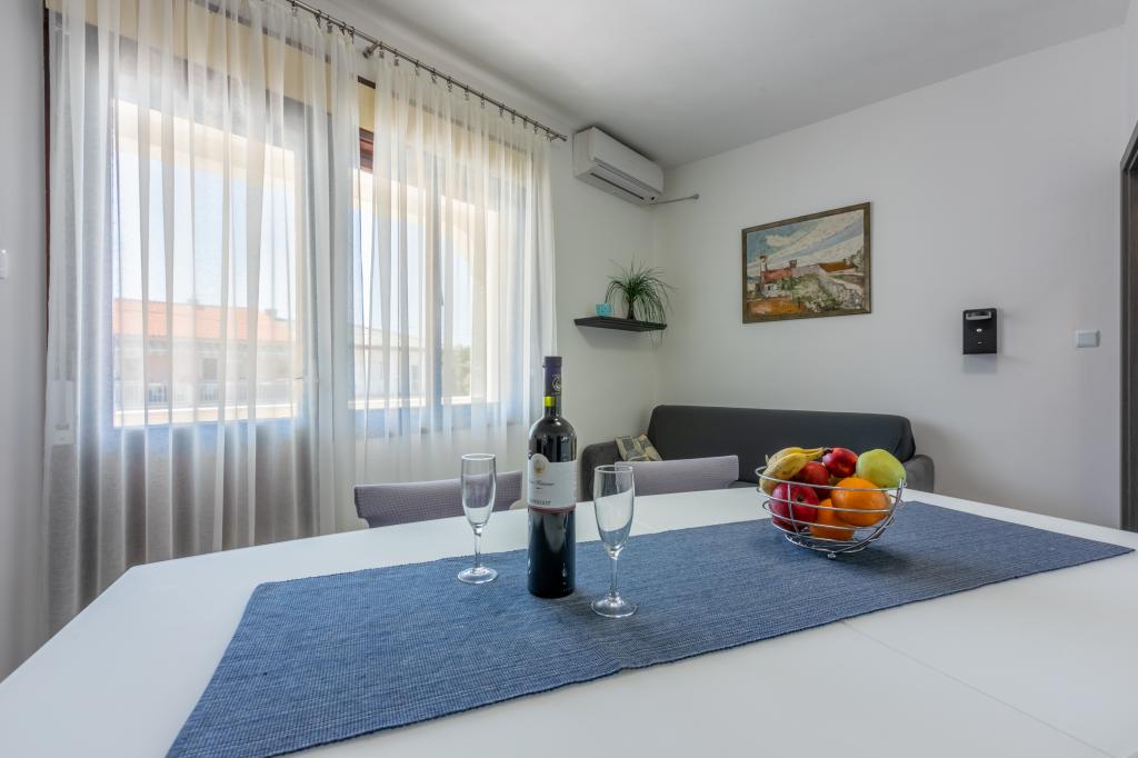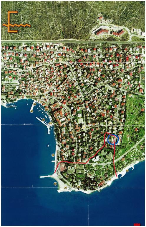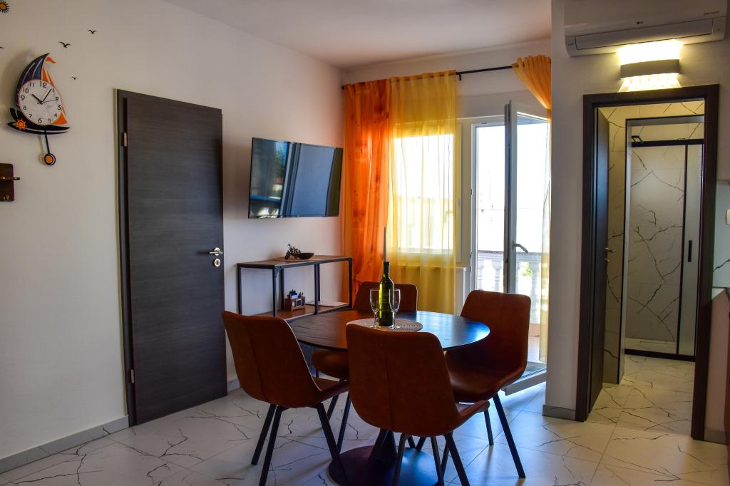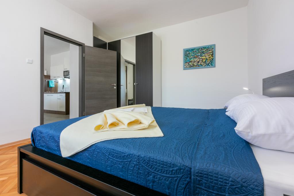 Apartamenty znajdują się w rodzinnym domu, kilka minut spacerem od morza i promenady z licznymi restauracjami, kawiarniami, obiektami sportowymi i sklepami. Apartament "Ema" (2+2) składa się z pokoju dwuosobowego, kuchni z jadalnią, w której znajduje się podwójna rozkładana sofa, którą można rozłożyć na łóżko małżeńskie, łazienki oraz przestronnego tarasu z grillem. Drugi apartament „Gita” (2+1) posiada dwuosobową sypialnię, przestronną kuchnię z jadalnią z rozkładaną sofą, łazienkę i przestronny taras.
