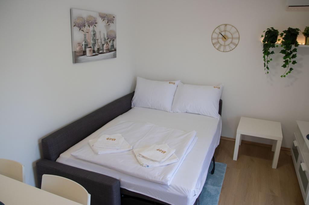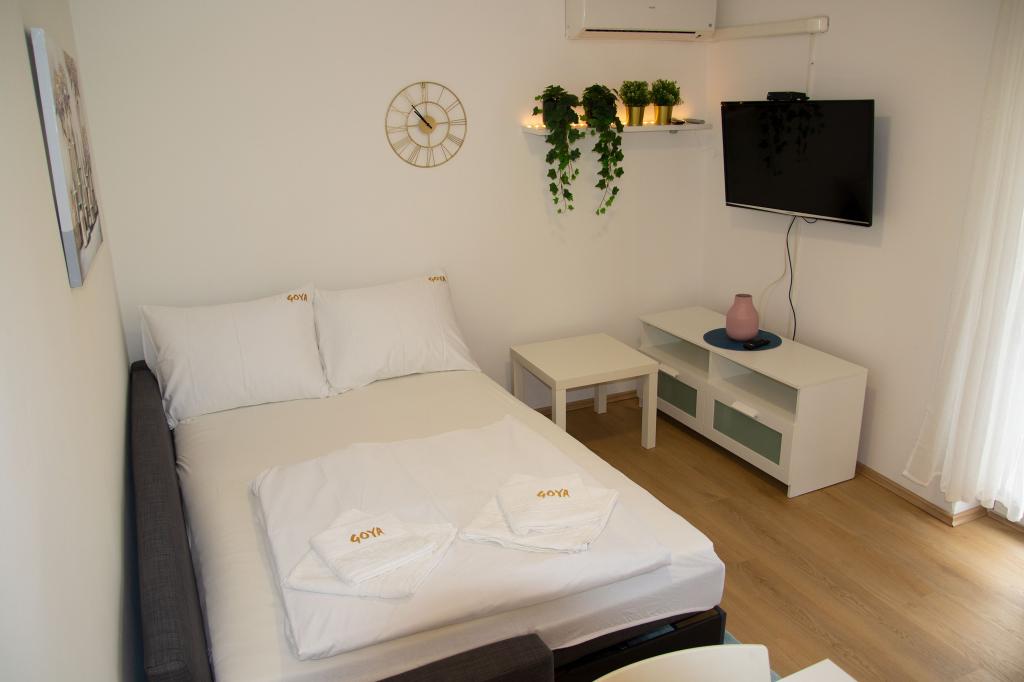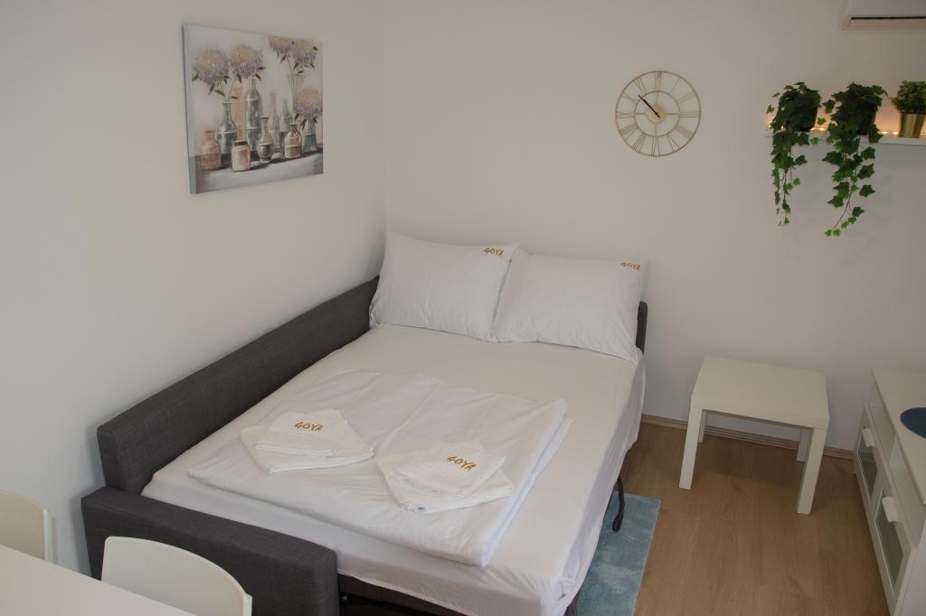 Apartamenty Goya znajdują się w Selc, w żupanii primorsko-gorskiej, w samym centrum Selc, w pobliżu plaży Polača. Apartamenty są klimatyzowane i oferują widok na morze. Oferują one podłogi wyłożone kafelkami, łazienkę, telewizor z płaskim ekranem, bezpłatne WiFi, biurko, salon, wyposażoną kuchnię i balkon. Wszystkie apartamenty obejmują również część wypoczynkową i jadalnię. Apartament oferuje również taras. Plaża Polača oddalona jest od apartamentu Goya o 50 metrów, a plaże Rokan i Poli mora – o 400 metrów. Najbliższe lotnisko, Rijeka Airport, znajduje się 26 km od obiektu. Dostępny jest bezpłatny transfer z/na lotnisko.
