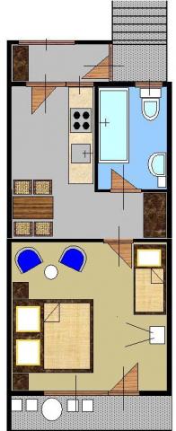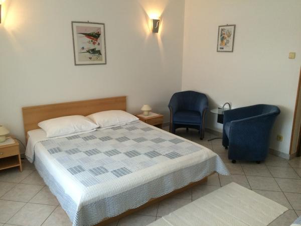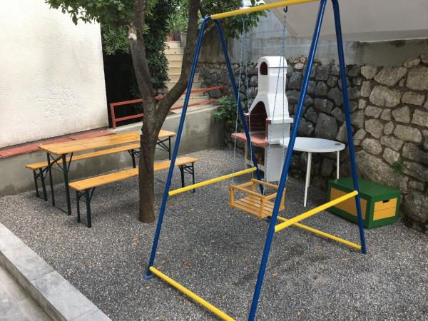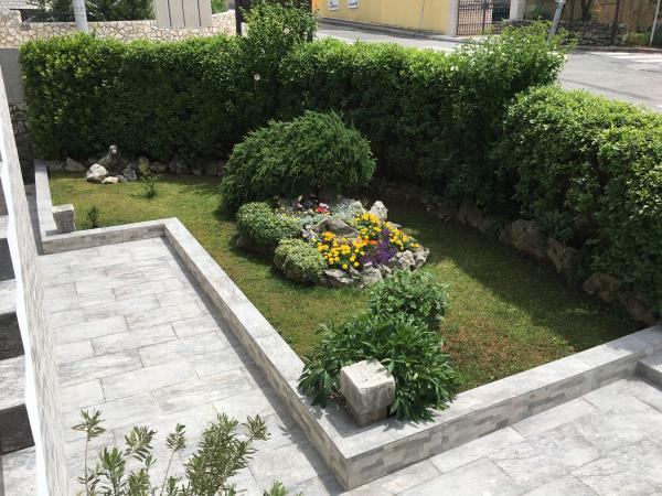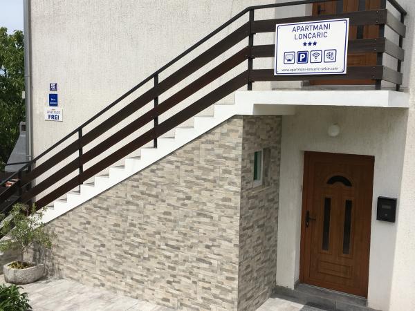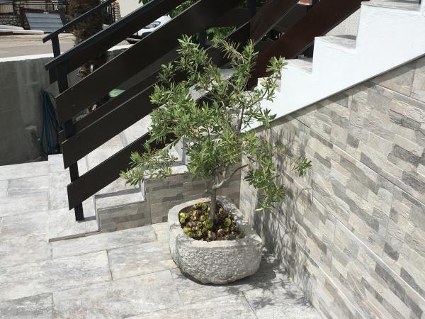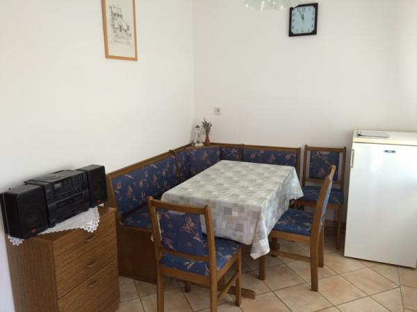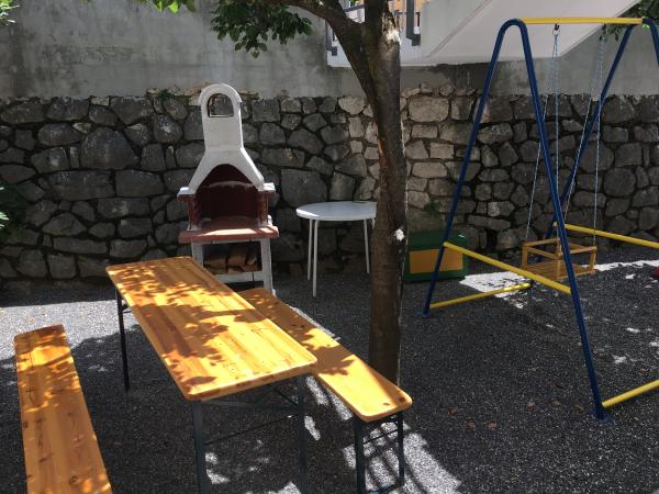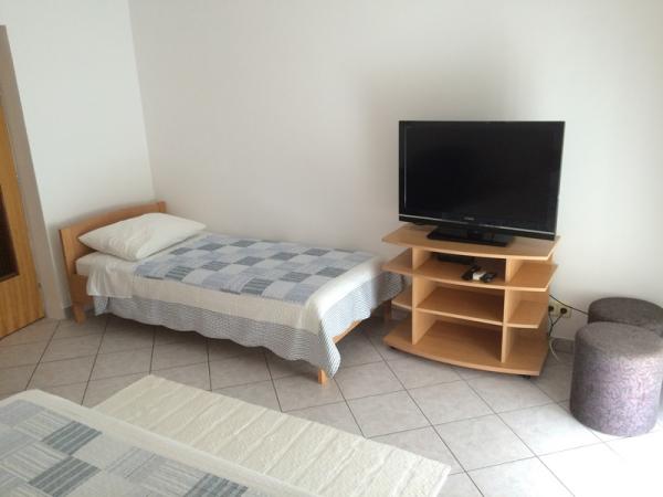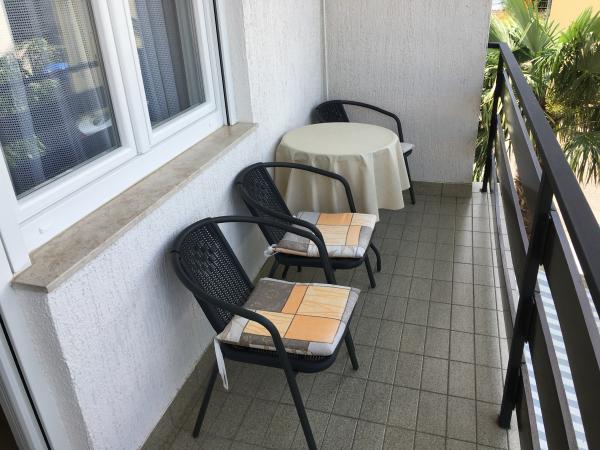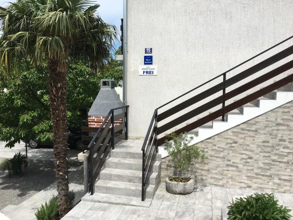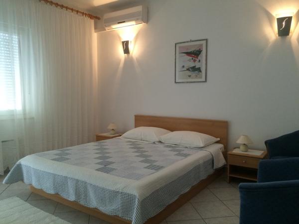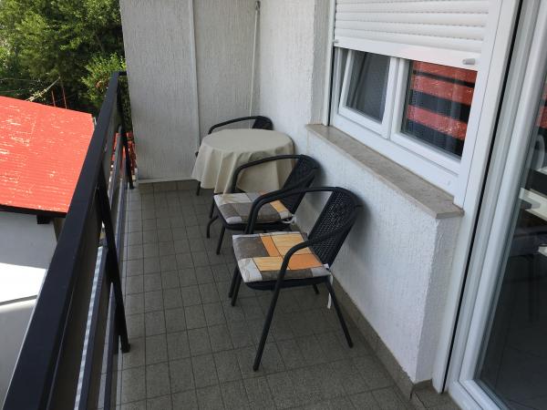 Apartamenty znajdują się w rodzinnym domu na pierwszym piętrze. Każdy apartament posiada osobne wejście, balkon, parking w podwórku. Na podwórku za domem są dostępne dla huśtawka i zjeżdżalnia dla dzieci. Apartamenty składają się z sypialni z trzema łóżkami (łóżeczko dziecięce lub dodatkowe łóżko), w pełni wyposażona kuchnia z jadalnią, łazienka z WC. Apartamenty wyposażone są w klimatyzację i telewizję satelitarną, a tam jest możliwość bezpłatnego korzystania z Internetu.