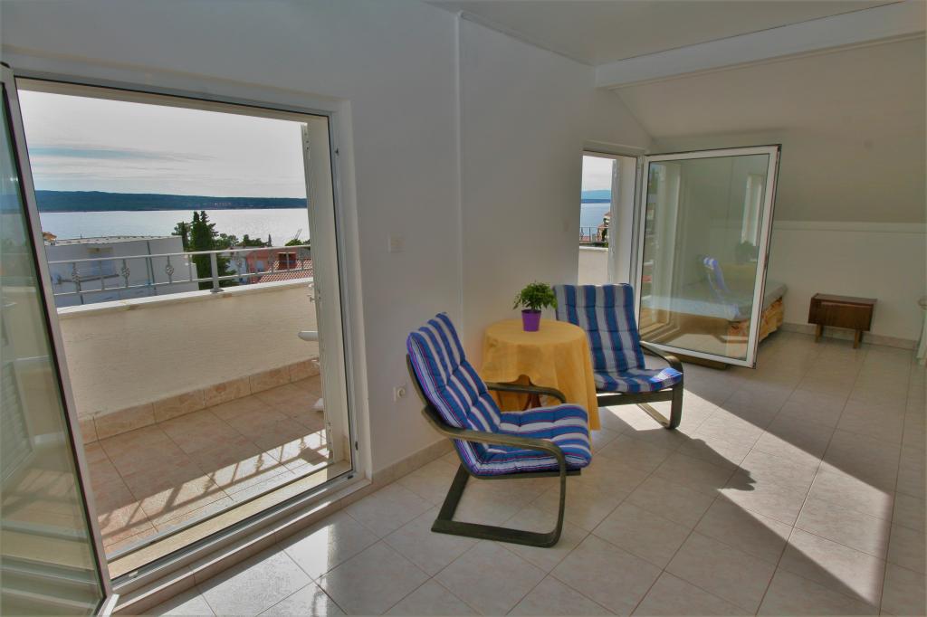 Przestronny i wyposażony apartament z dwoma sypialniami, 2 łazienkami, 2 tarasami i kuchnią w budynku położonym 100 m od plaży i centrum Selce.