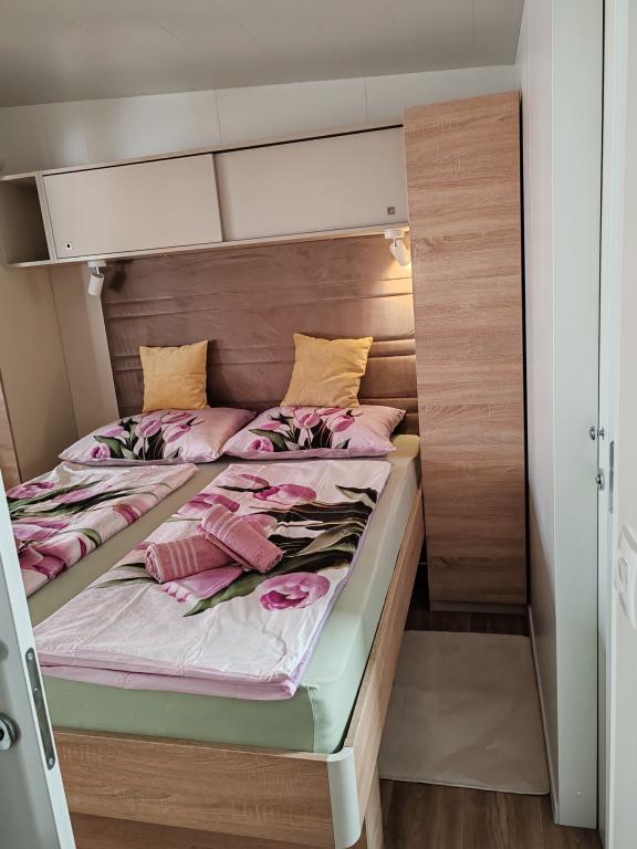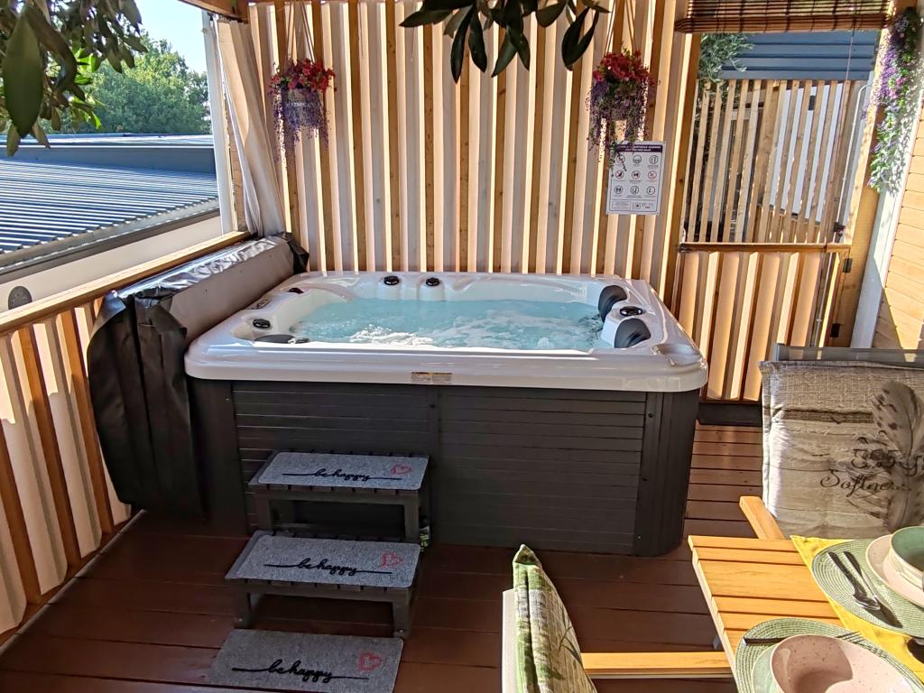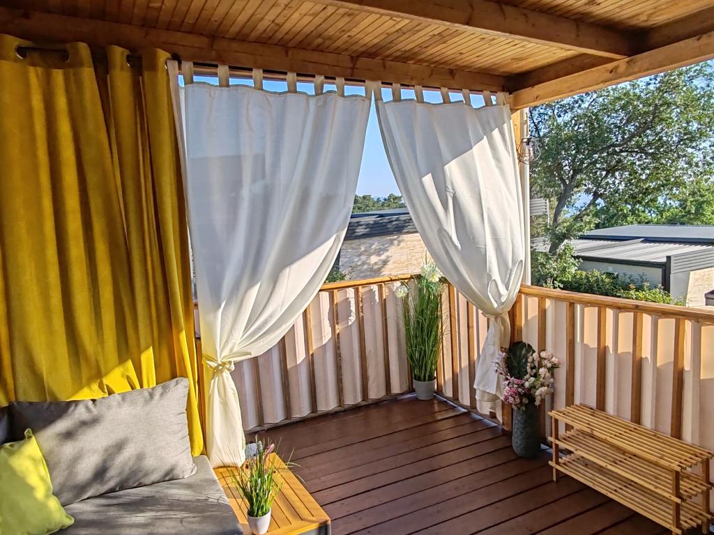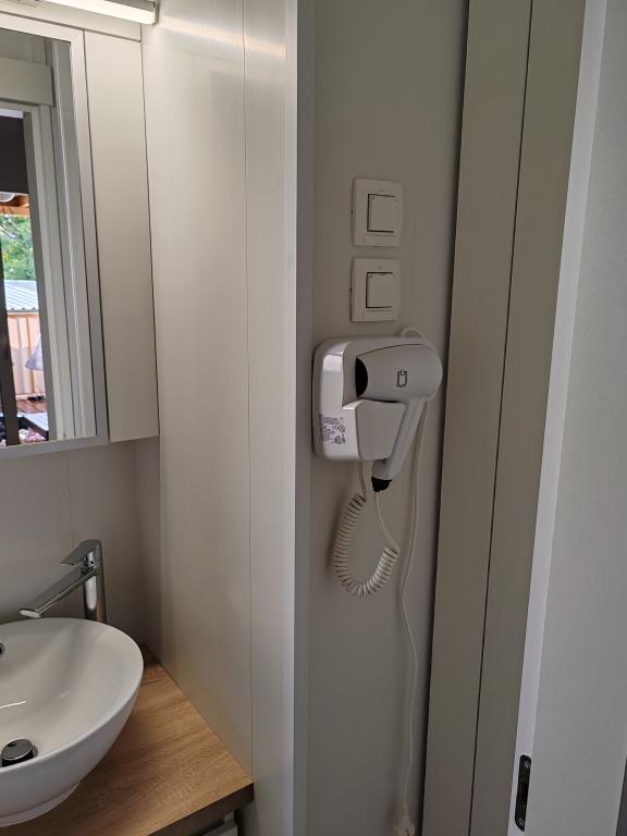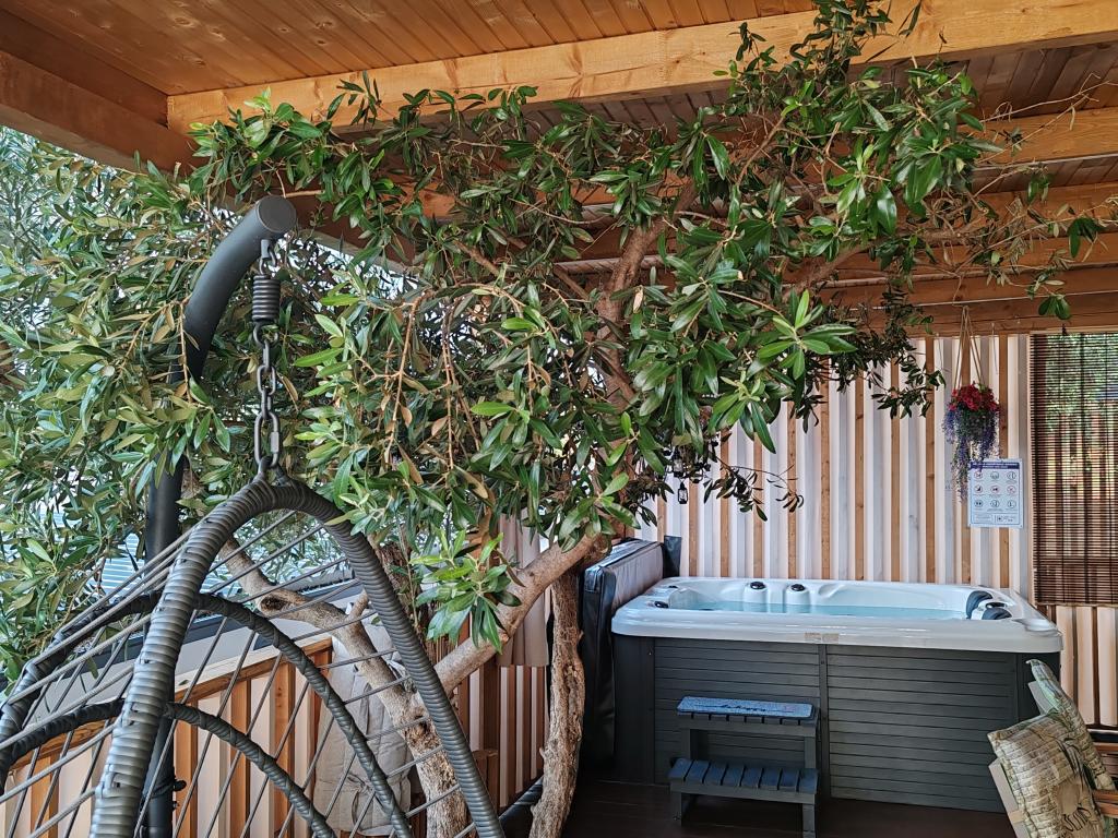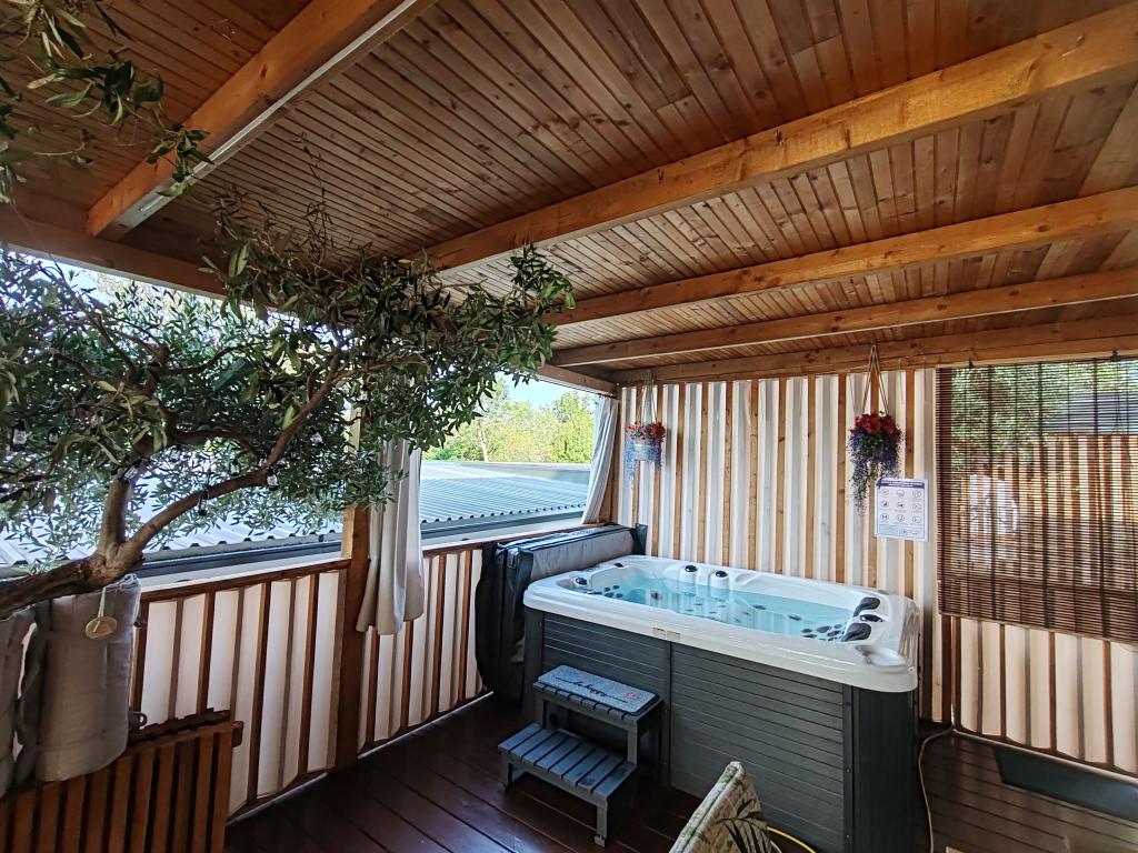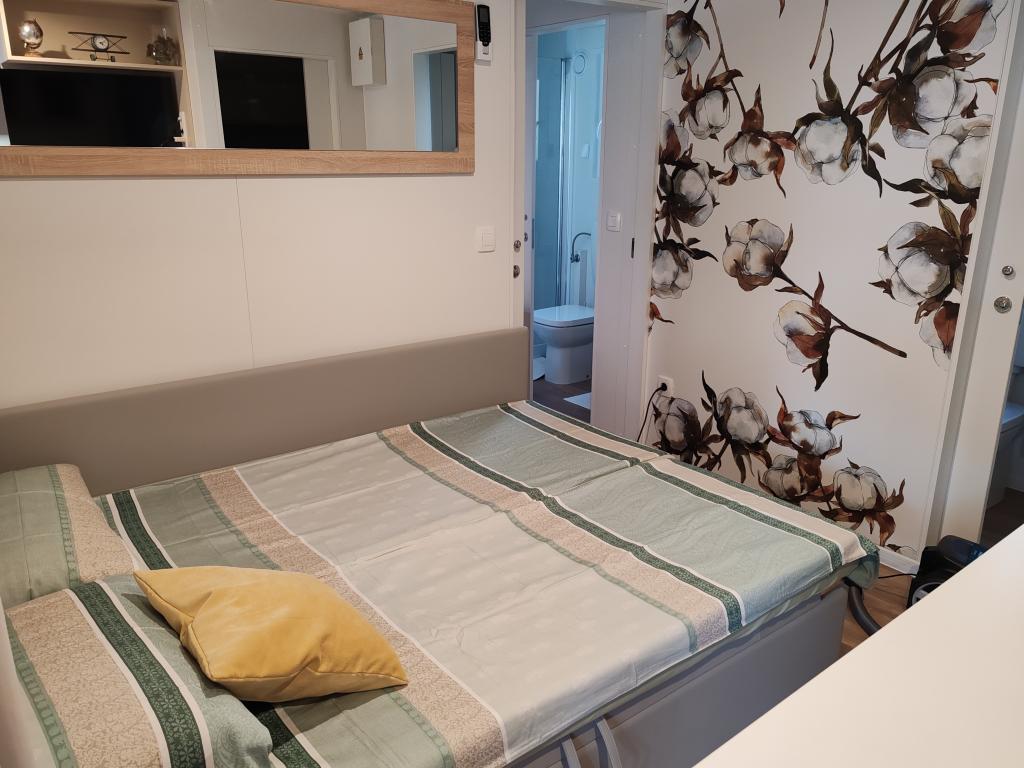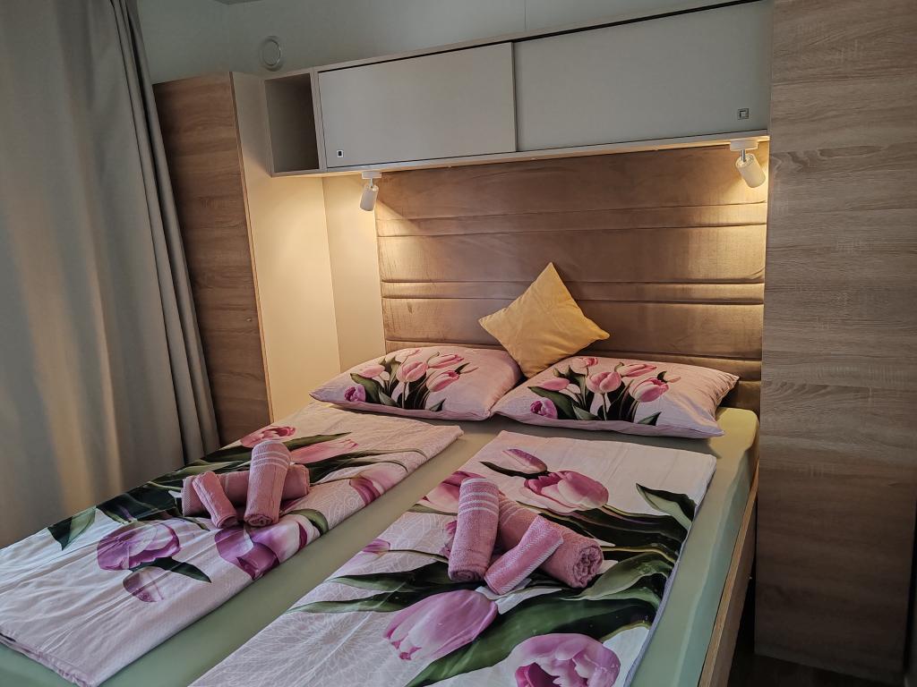 W pełni wyposażony i nowoczesny dom mobilny w doskonałej lokalizacji na znanym i dobrze wyposażonym kempingu, który oferuje wiele udogodnień, szczególnie dla rodzin z dziećmi. Dom o powierzchni 32 m² składa się z 2 sypialni, salonu oraz w pełni wyposażonej kuchni ze wszystkim, czego potrzebujesz, zmywarką, kuchenką mikrofalową, tosterem, ekspresem do kawy Dolce Gusto i czajnikiem. Do dyspozycji Gości są również dwie toalety z prysznicami. Jeden pokój wyposażony jest w łóżko podwójne o wymiarach 140 × 200 cm i własną łazienkę. Drugi pokój wyposażony jest w 2 łóżka pojedyncze o wymiarach 90 × 200 cm. W salonie znajduje się rozkładana sofa dla dwóch osób. Taras o powierzchni 29 m² wyposażony jest w podgrzewane jacuzzi z masażem i miejsca do siedzenia. Dom jest w pełni wyposażony we wszystko, czego potrzebujesz (pościel, ręczniki, kosmetyki itp.). Do dyspozycji Gości jest grill gazowy na świeżym powietrzu. Kompleks basenowy znajduje się zaledwie 100 m dalej, a plaża – ok. 250 m dalej. Do centrum Selc można dojść pieszo w zaledwie 13 minut. Obiekt oferuje prywatny parking i bezpłatny dostęp do internetu dzięki telewizorowi Smart TV.